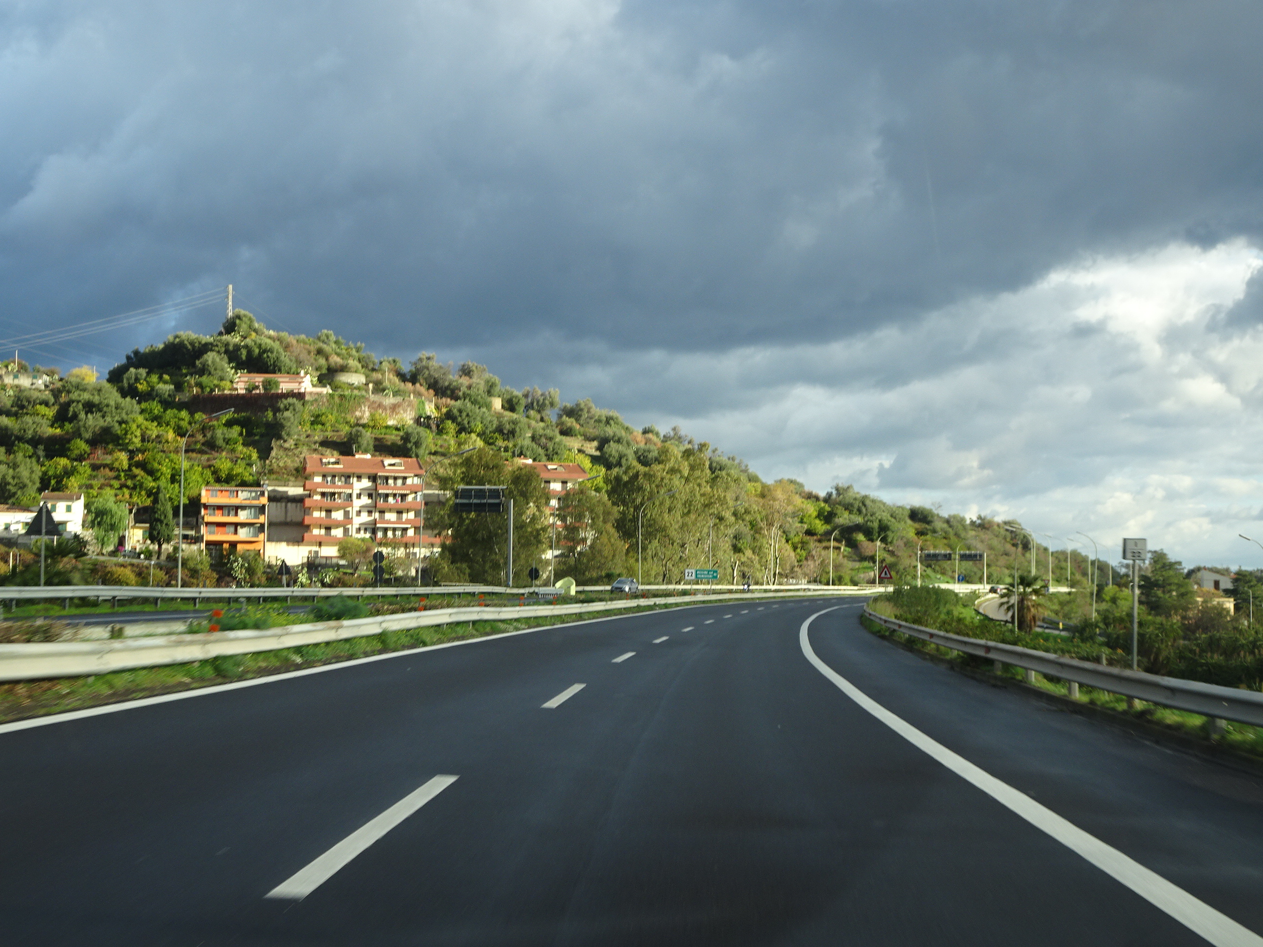 Am continuat apoi spre Tropea pe autostrada A2. Tronsonul dintre Scilla și Vibo este unul din cele mai nou construite și are zeci de tuneluri și viaducte care traversează dealurile Calabriei
