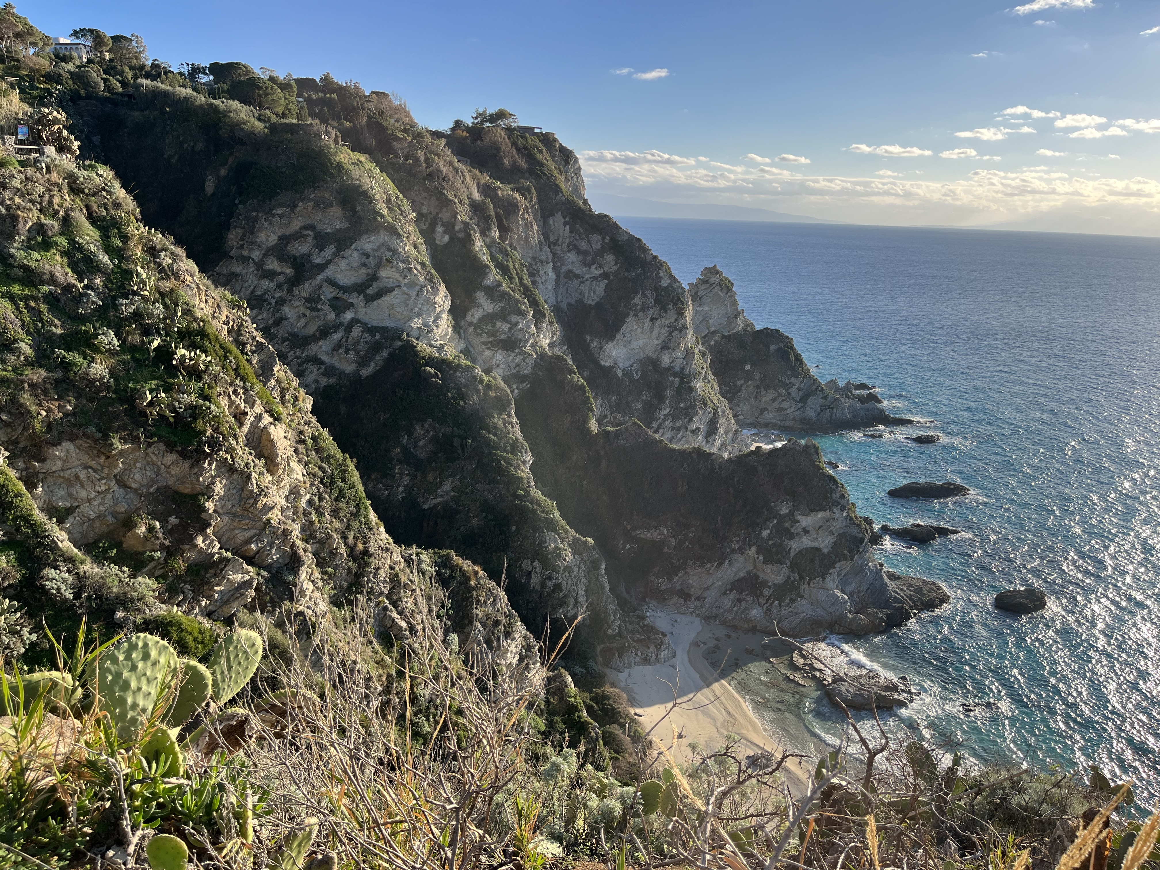 Mai departe am continuat plimbarea pe coasta de la vest de Tropea, unde pe țărmul accidentat se pot vedea o mulțime de plaje splendide. Cred că vara este superb să mergi la mare aici