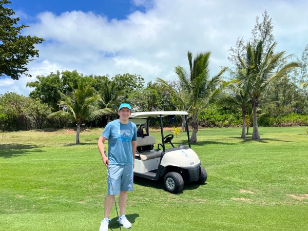 Am jucat de 2 ori un traseu cu 18 gauri. Nu am luat un caddy (adică valet) ci ne-am descurcat noi cu crosele și mașina de golf închiriată.