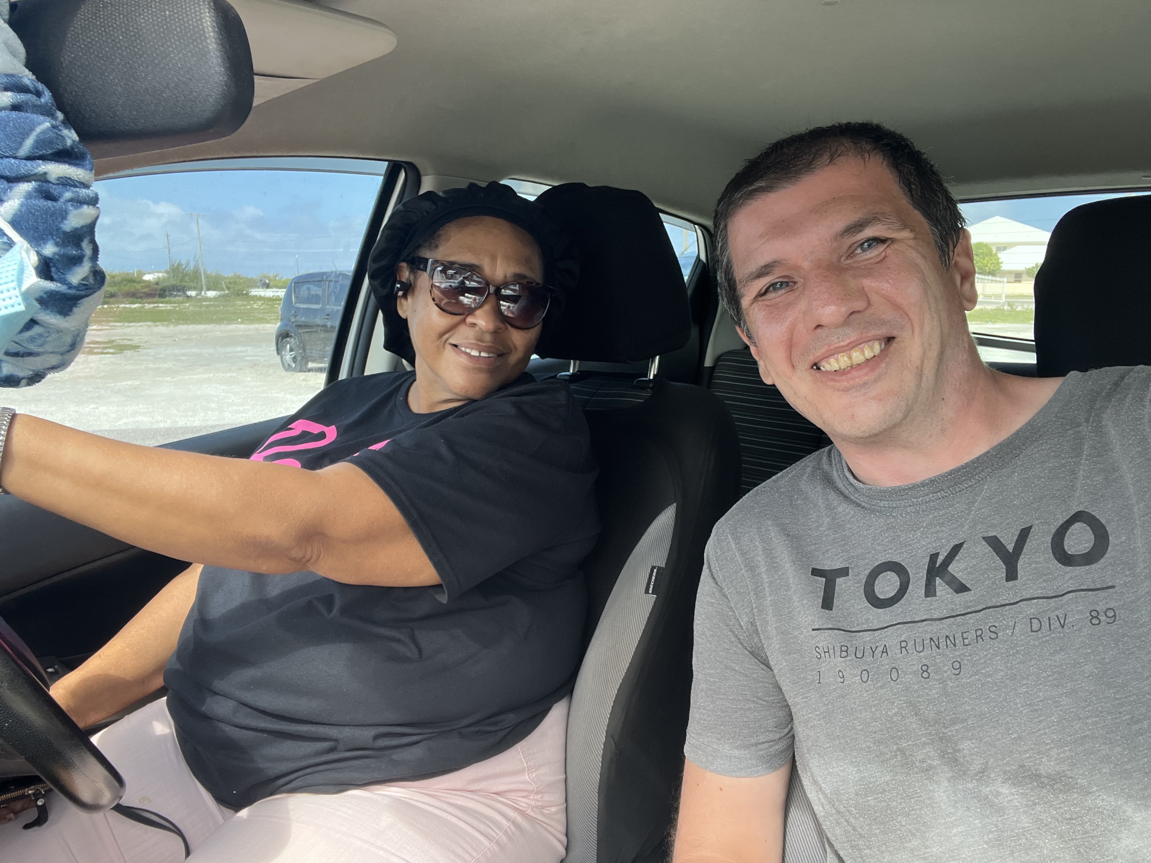 După 30 de minute, am sosit pe aeroportul de pe insula Grand Turk. Mare surpriză am avut când la micul aeroport n-am găsit niciun fel de transport – niciun taxi, nici pomeneală de vreun autobuz. Mulți localnici au luat-o pe jos spre oraș. Pentru mine era prea cald de mers 3 kilometri prin soare.