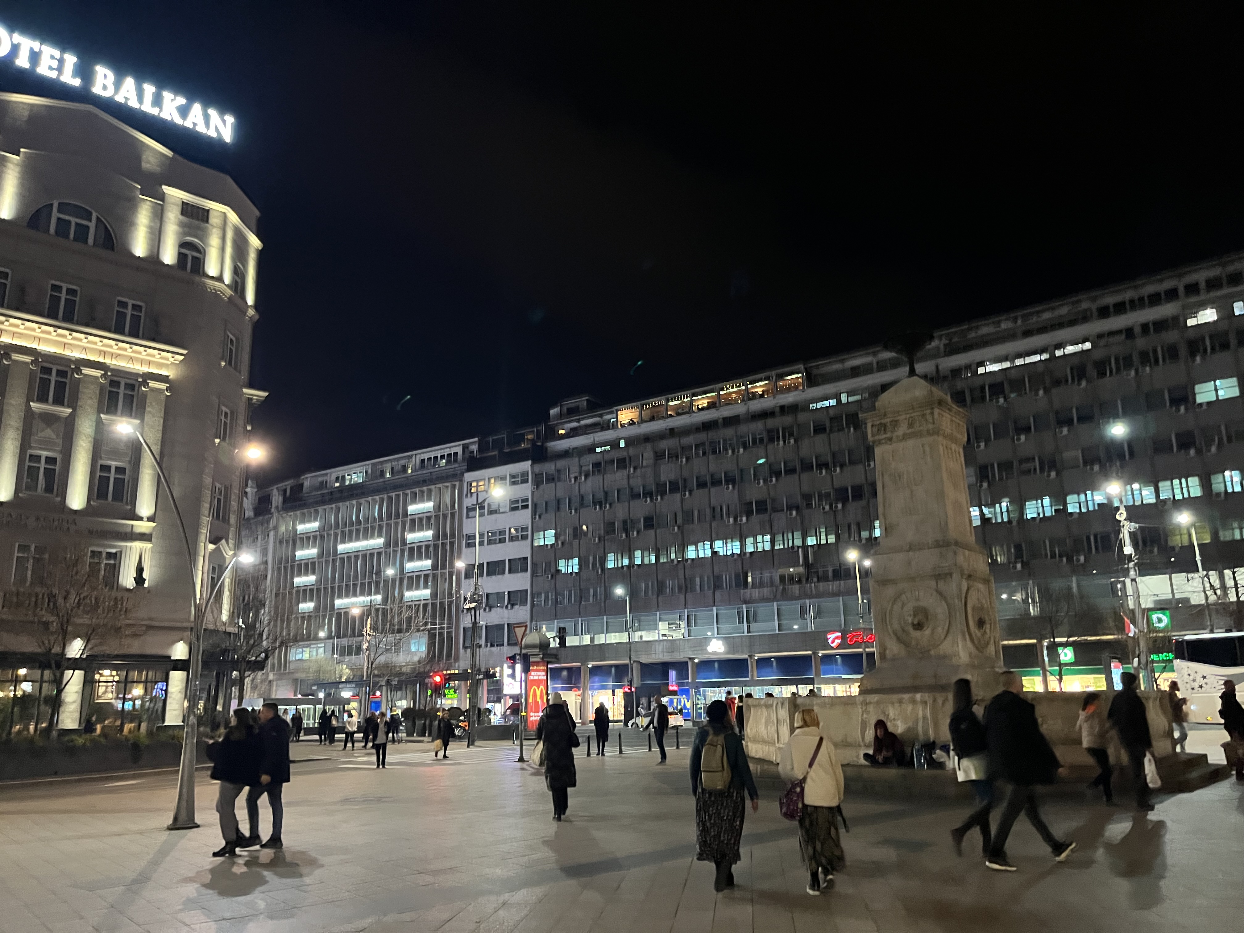 Seara am ieșit la plimbare prin centru. Belgrad este un oraș foarte animat noaptea