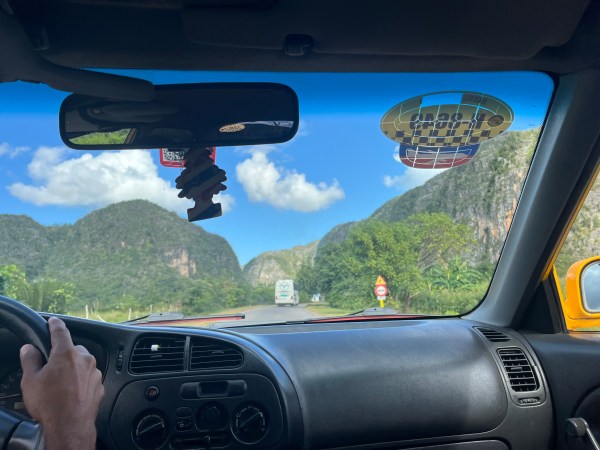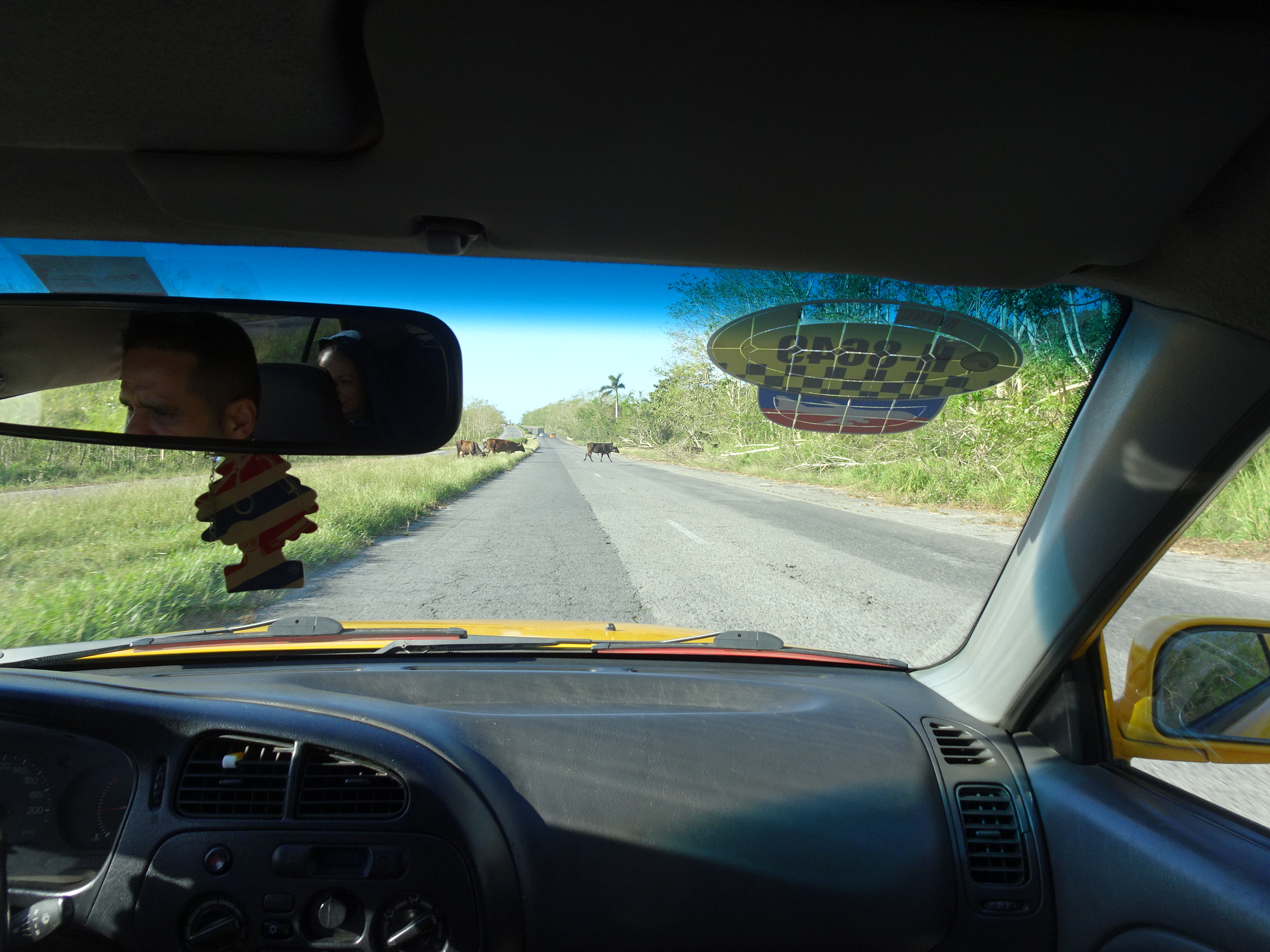 Pentru a ajunge la Vinales am rezervat o excursie chiar de la recepția hotelului din Havana. Am mers cu un taxi, o mașină mai nouă (ceva ce prin Cuba nu se găsește chiar ușor). Drumul la dus a durat aproape 3 ore. Am mers mai întâi pe cei 150 de kilometri pe autostrada dintre Havana și Pinar del Rio. Șoseaua nu e rea, dar când ți-e lumea mai dragă te trezești cu un filtru de politie sau cu o turmă de vaci care traversează autostradă.