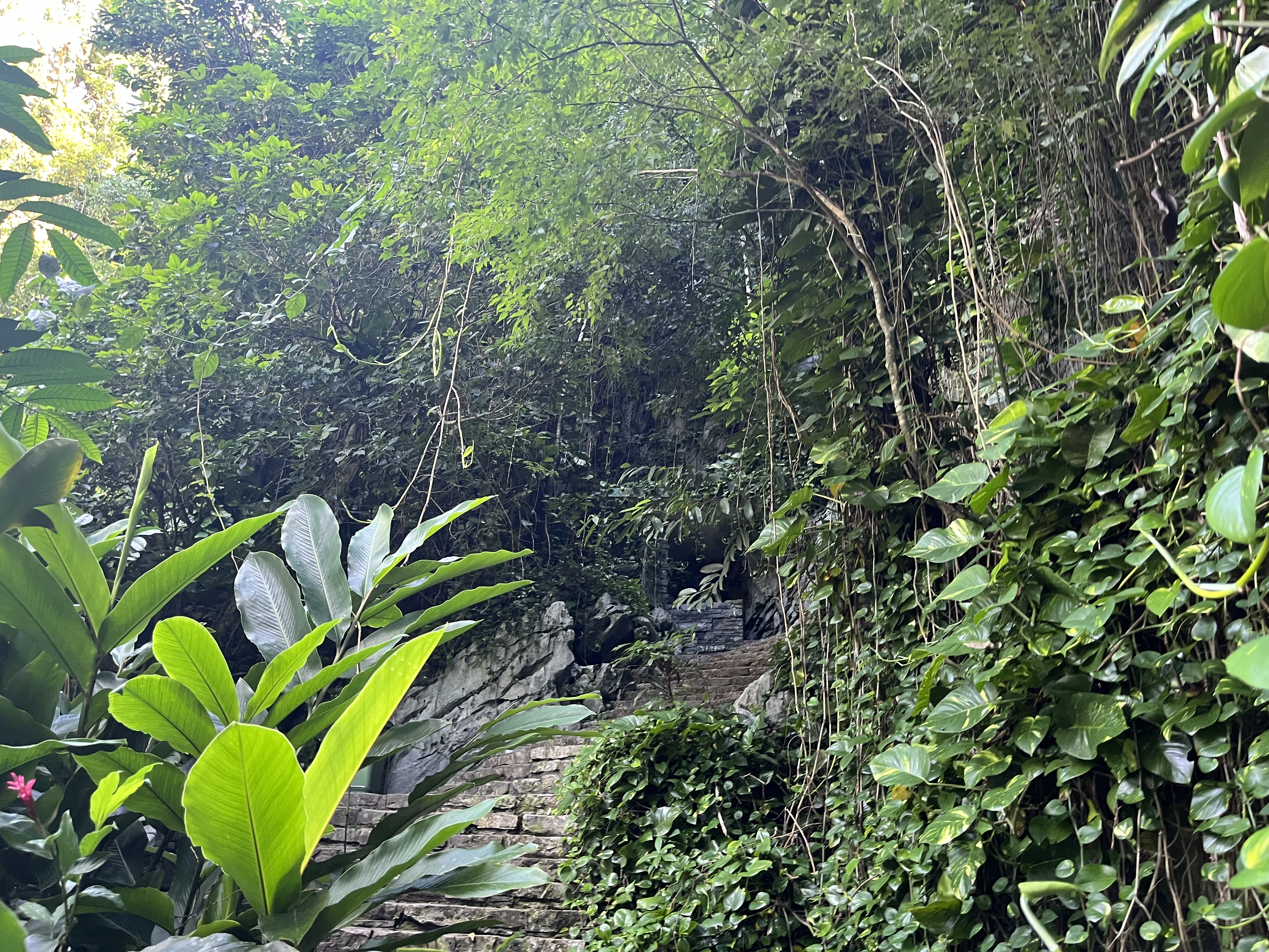 Am urcat întâi pe scări până la intrarea în peșteră.