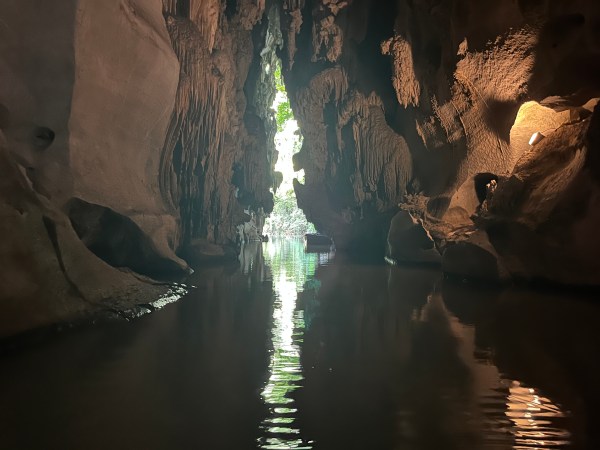 A doua parte din Cueva del Indio este scufundată și restul drumului se parcurge cu barca.