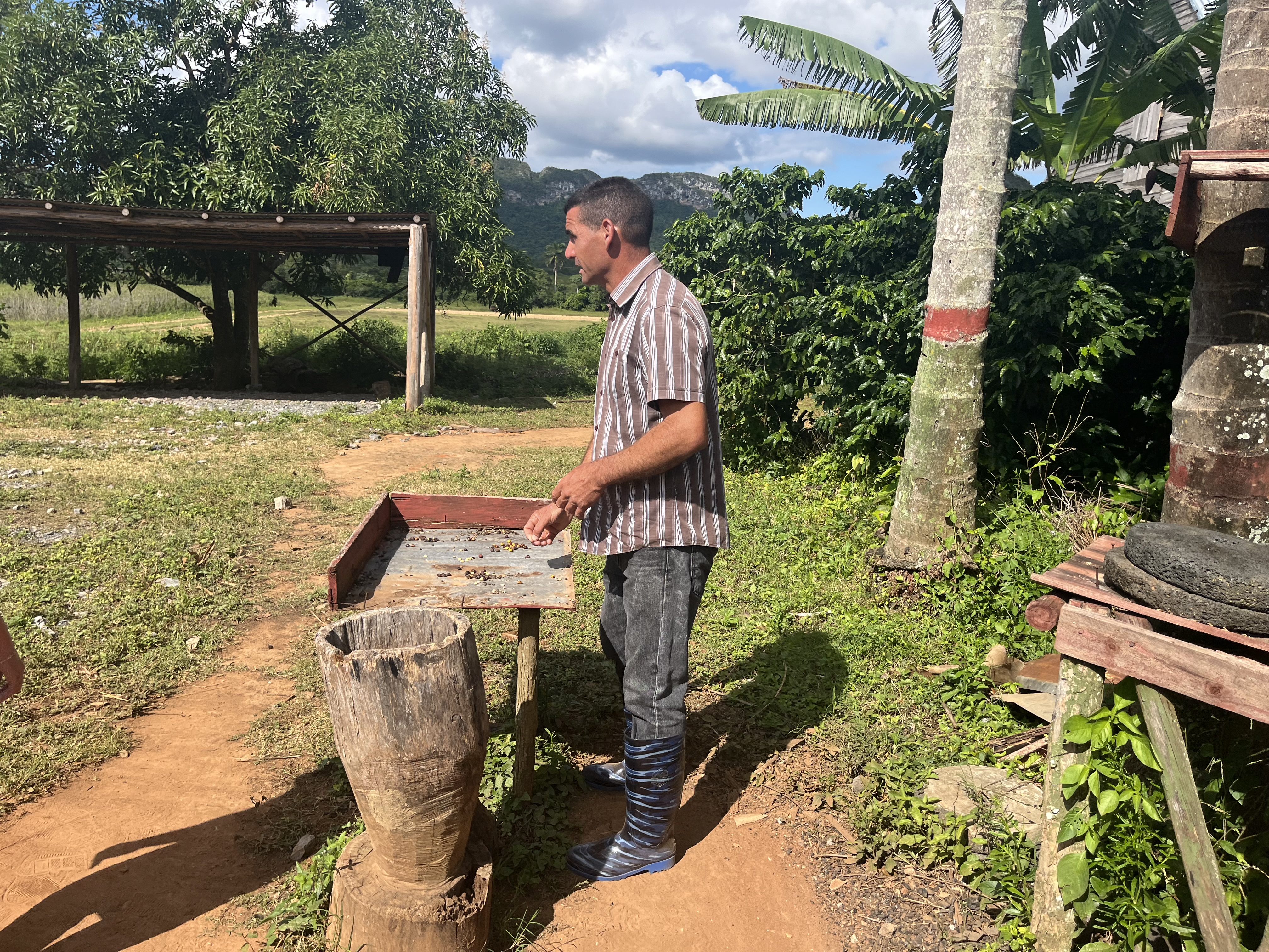 Unul dinte fermieri ne-a făcut mai întâi o prezentare despre producerea cafelei și a tutunului la fermă.