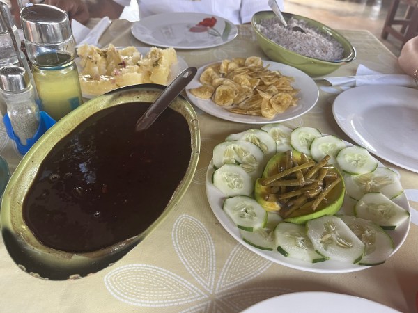 Înainte de toate am oprit la Trinidad la un restaurant. Am servit masa la Hotelul Mystique aflat într-un vârf de deal deasupra orașului.