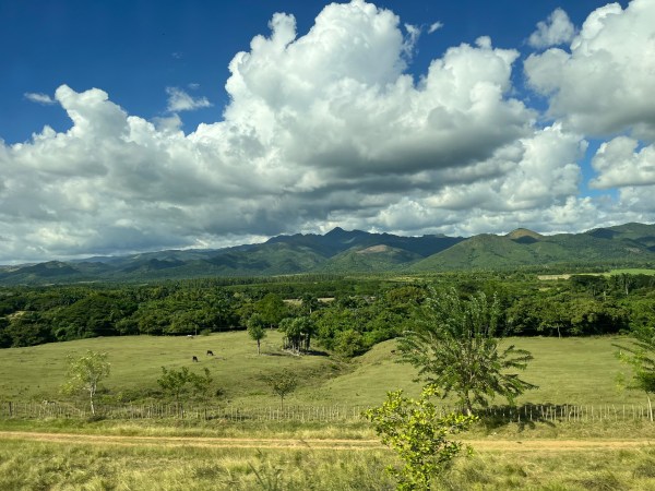 Când ne-am apropiat de Trinidad, am descoperit un peisaj mai diferit, câmpuri mai plate, unde se vedea că erau cândva mari culturi agricole. Această zonă din apropierea coastei Mării Caraibelor se numește Valle de los Ingenios și era cândva cea mai mare plantație de trestie de zahăr de pe continent.