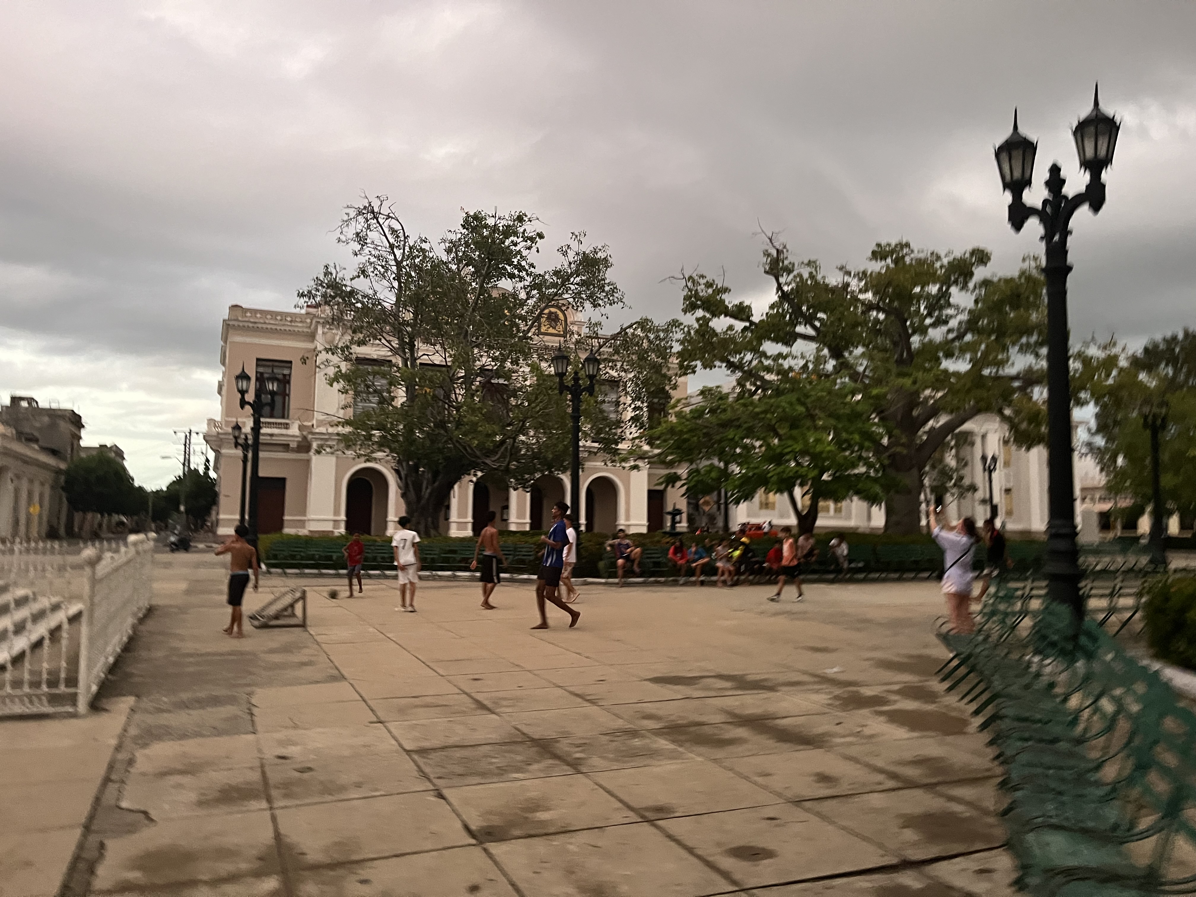 Băieții încing o partidă de fotbal în centru. Asta e ceva mai rar de vazut, pentru că sportul cel mai popular din Cuba este de departe baseball.