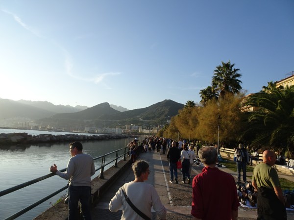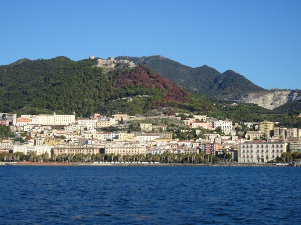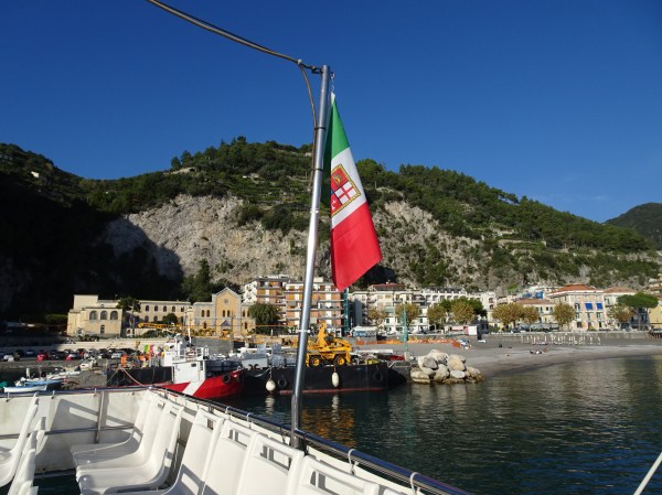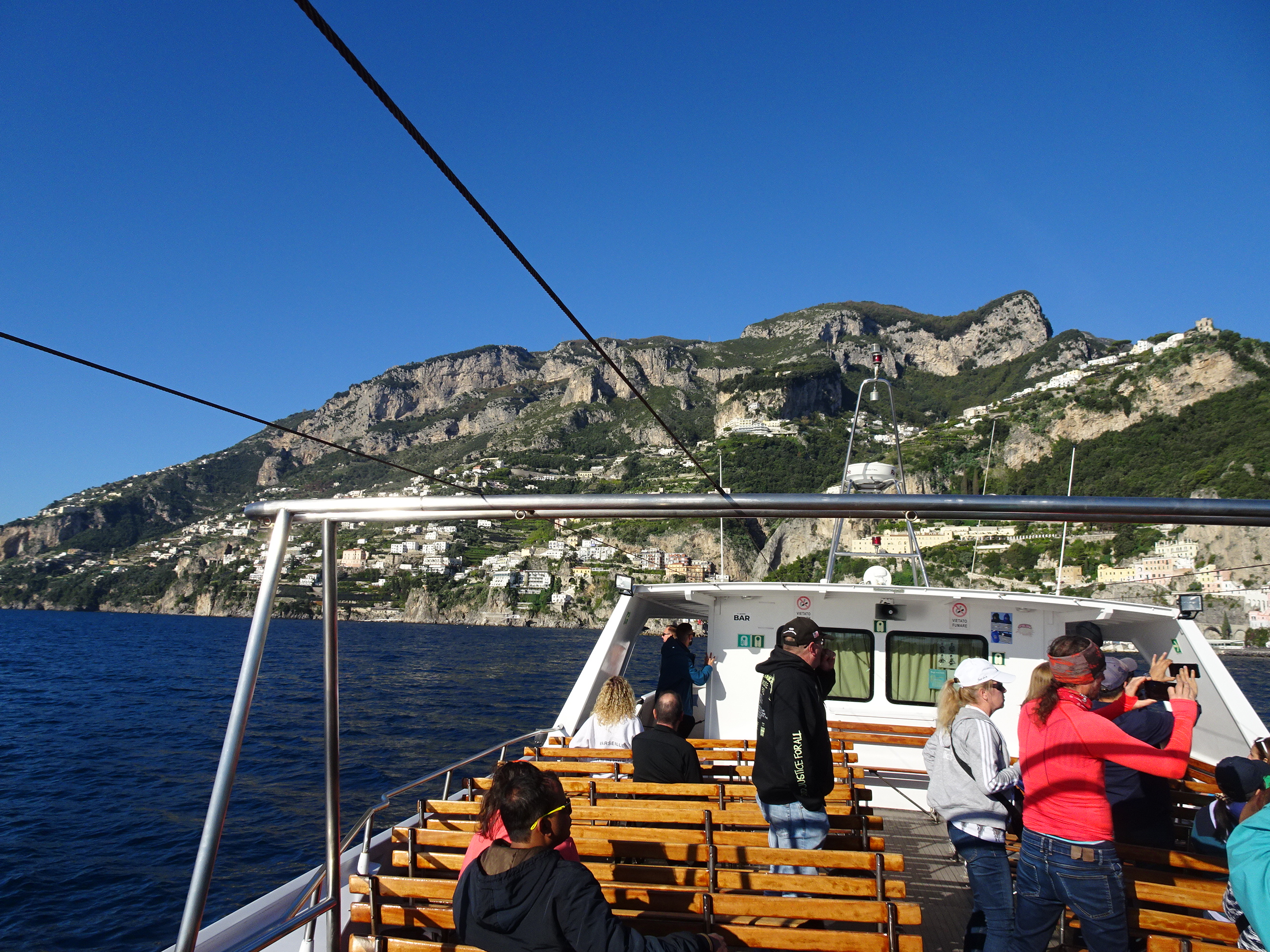 Părăsind portul Salerno pe vaporul Travelmar. Era toamnă târzie dar am prins o zi cu un soare superb și am putut admira peisajele de pe puntea superioară.