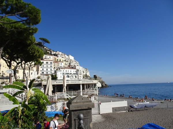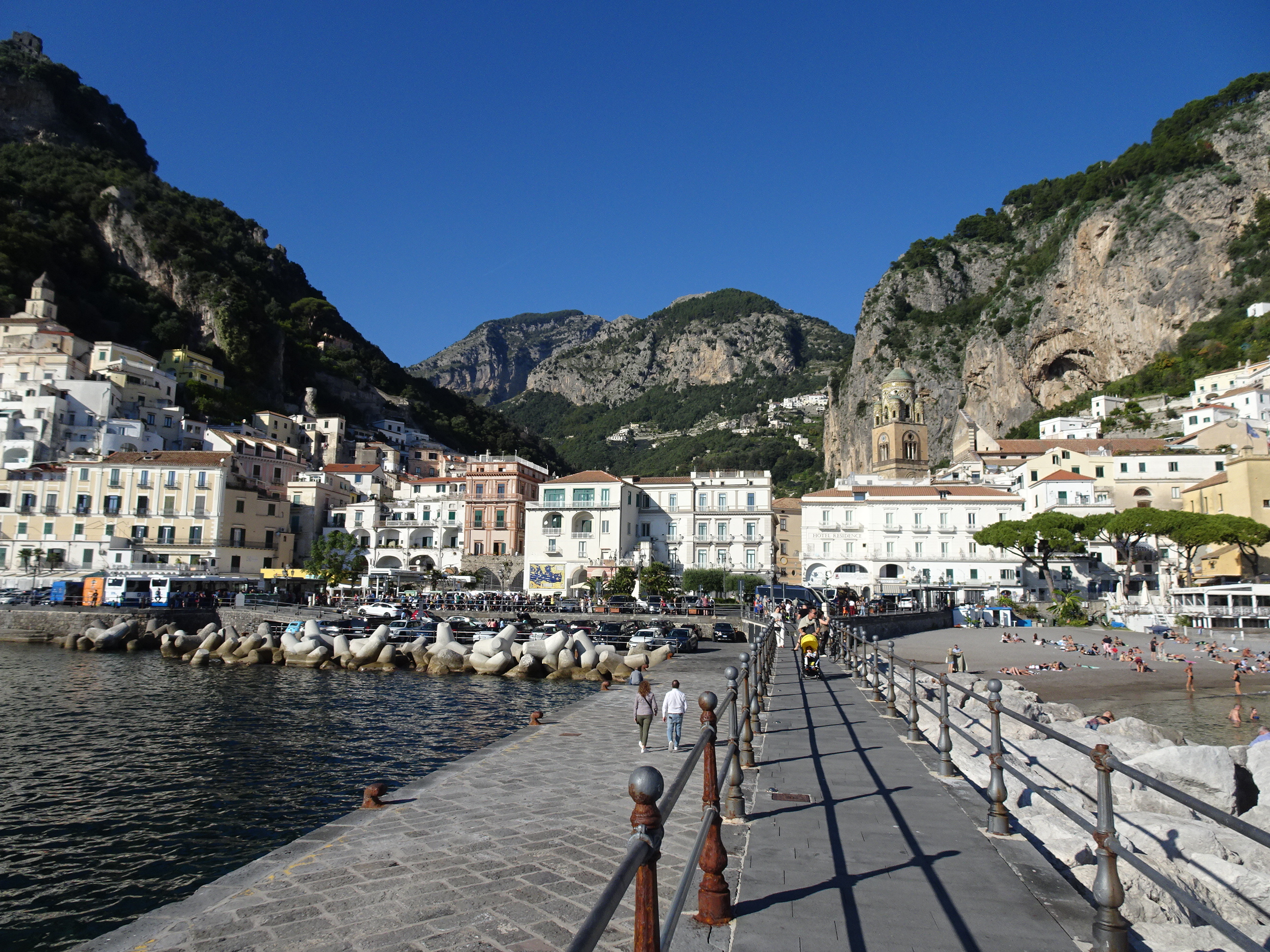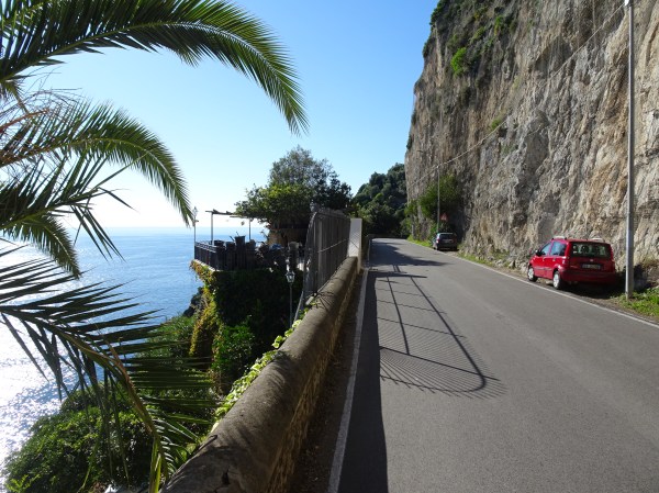 La plecare n-am mai avut noroc și am pierdut la mustață autobuzul de Amalfi. Următorul venea peste 2-3 ore, astfel că n-am avut alternativă decât mersul pe jos – erau 4 kilometri până în Amalfi. Problema este că drumul acesta nu are niciun fel trotuar iar pentru pietoni este foarte periculos. După vreo jumătate de oră de mers și vreo 3 mașini care erau să dea peste mine, am renunțat la idee și am cerut ajutor unei familii care trecea cu mașina. A fost prima oară în viața mea când am făcut autostopul. A fost frumos pentru că povestind pe drum ne-am împrietenit. Ei erau din Napoli și urma peste câteva săptămâni să petreacă o vacanță (culmea) la București, astfel că am putut întoarce favoarea oferind mai multe sfaturi utile de călătorie.