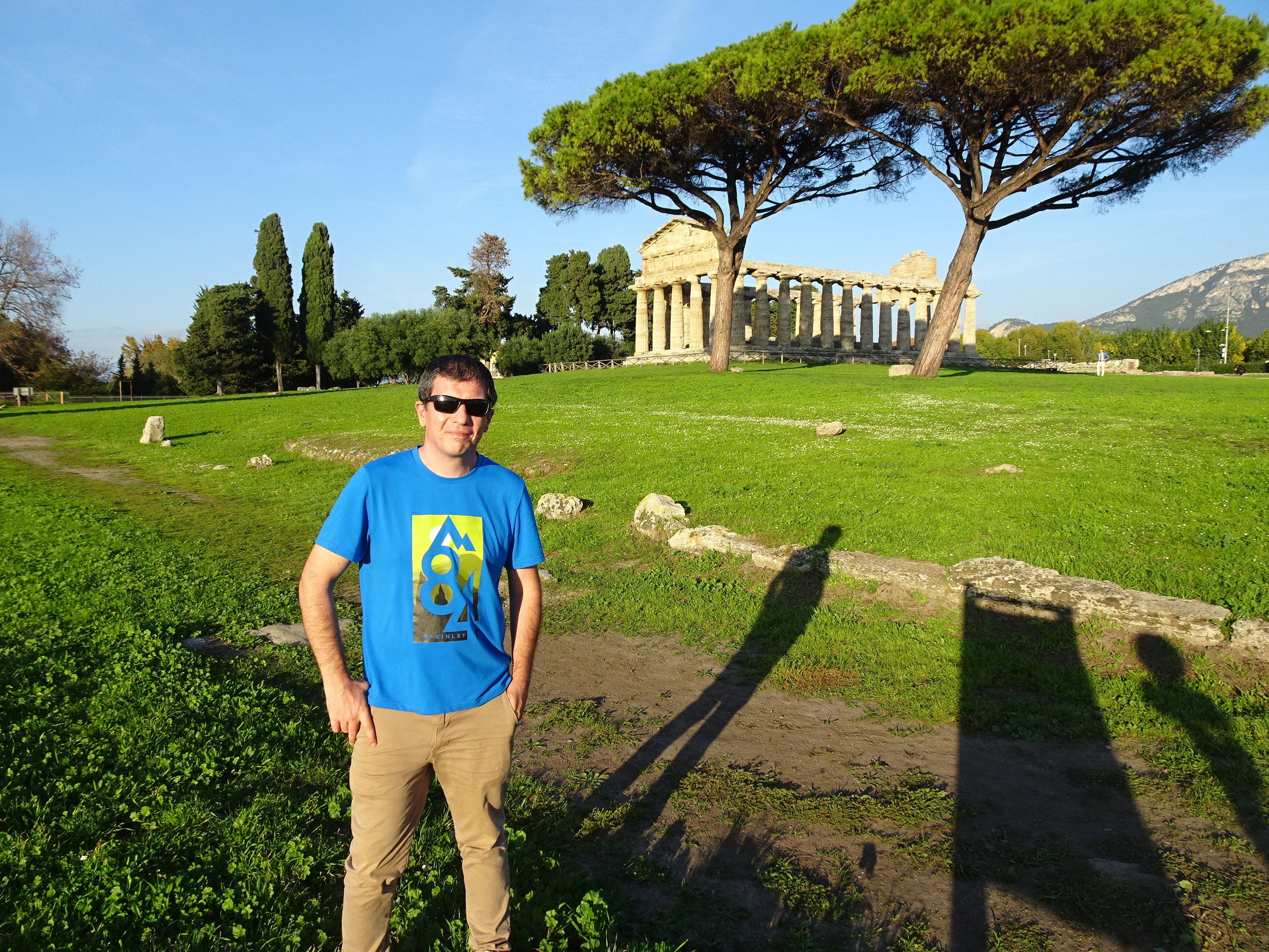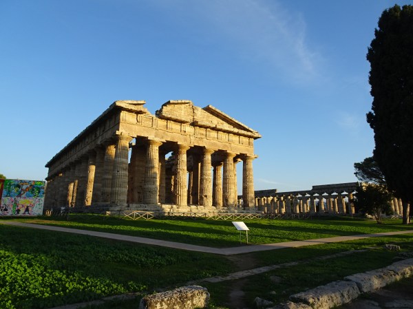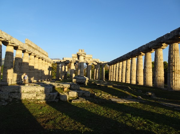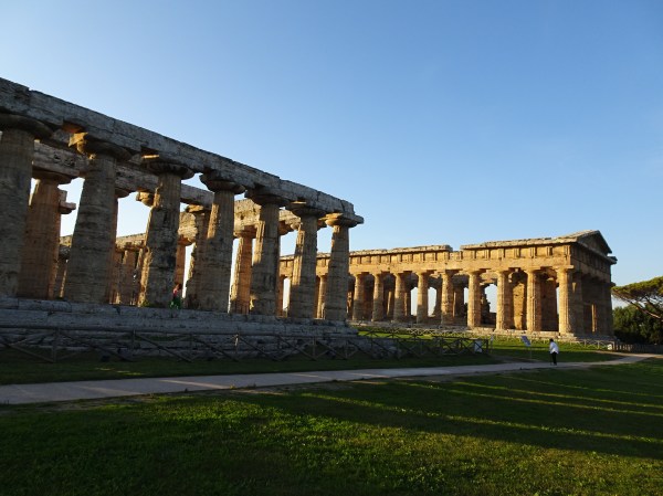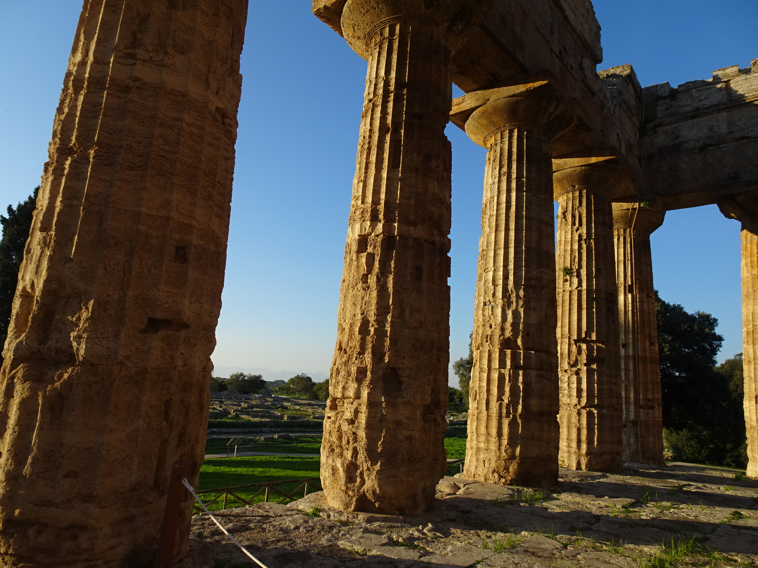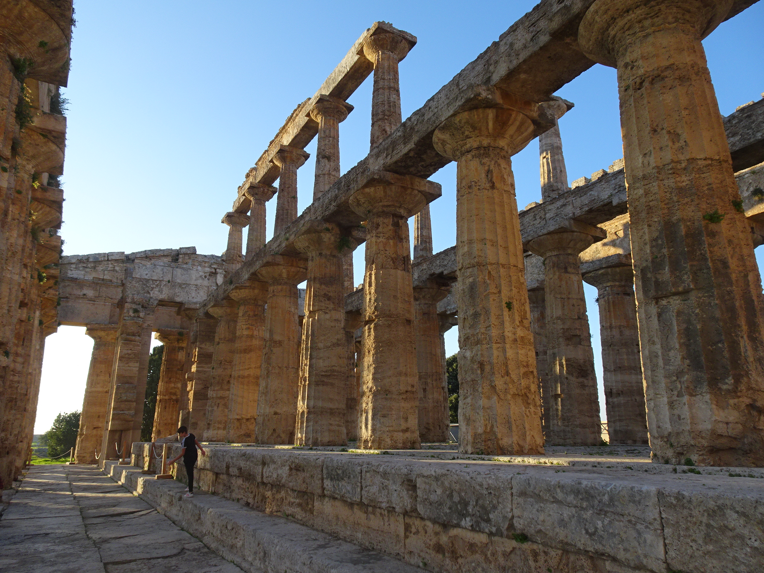 Vederi cu marile temple de la Paestum. Nu sunt eu cel mai mare fan al arheologiei, dar Paestum m-a impresionat profund. M-am mirat că acest loc unic nu e mai cunoscut în lume. Nu cred că altundeva în afară de Atena și Roma, mai există ruine atât de impresionante.