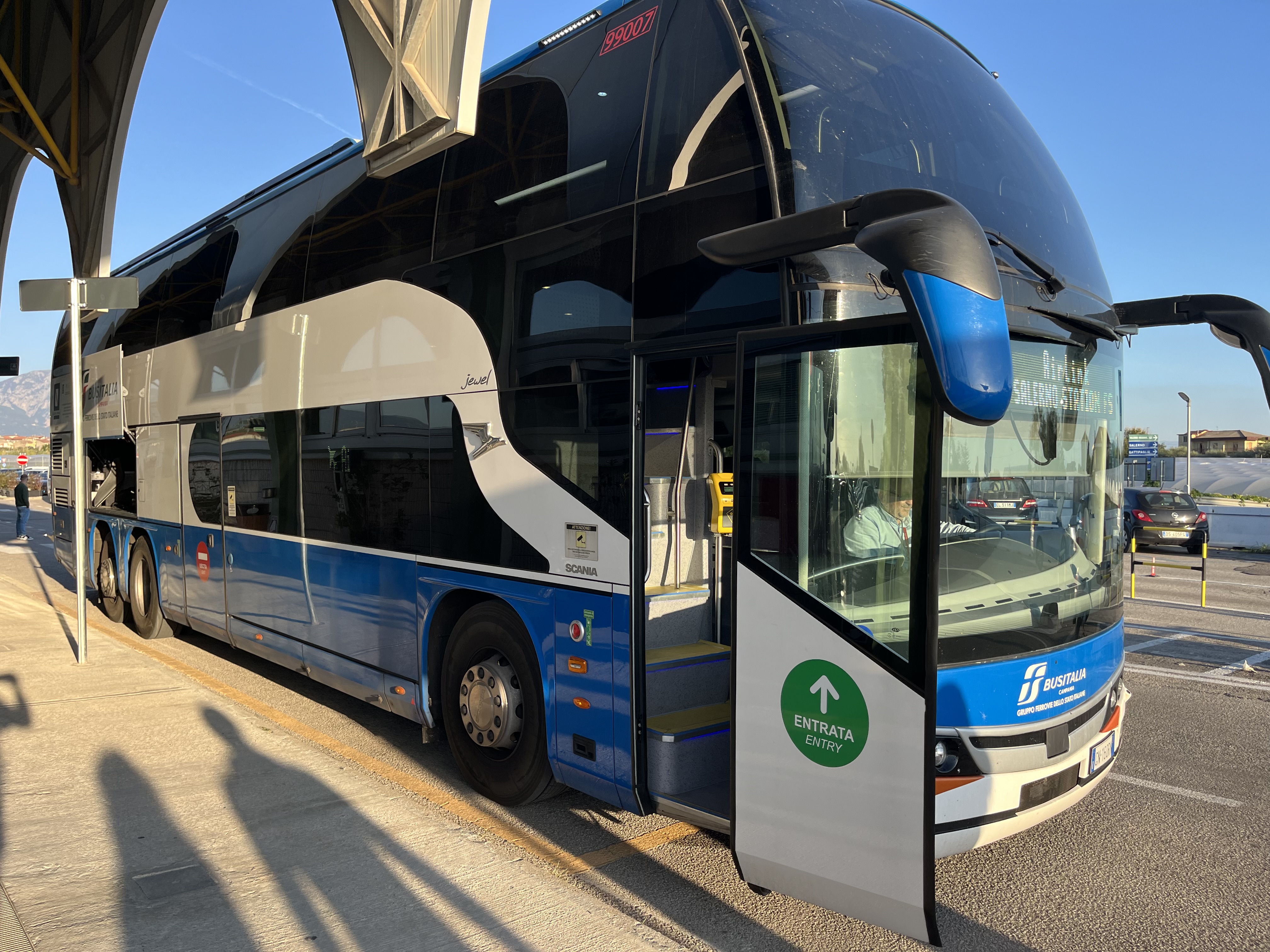 Fiind un aeroport nou, mai erau încă lucruri de aranjat. Singurul mod de a ajunge în oraș era un autocar operat de Trenitalia care avea vreo 3 curse pe zi sincronizate cu zborurile. Taxiuri nu am văzut pe acolo, astfel că dacă nu prindeam autocarul nu știu ce alte variante mai erau. Am mers direct la gara din Salerno unde am sosit după vreo 45 de minute.
