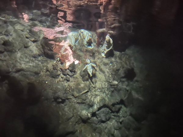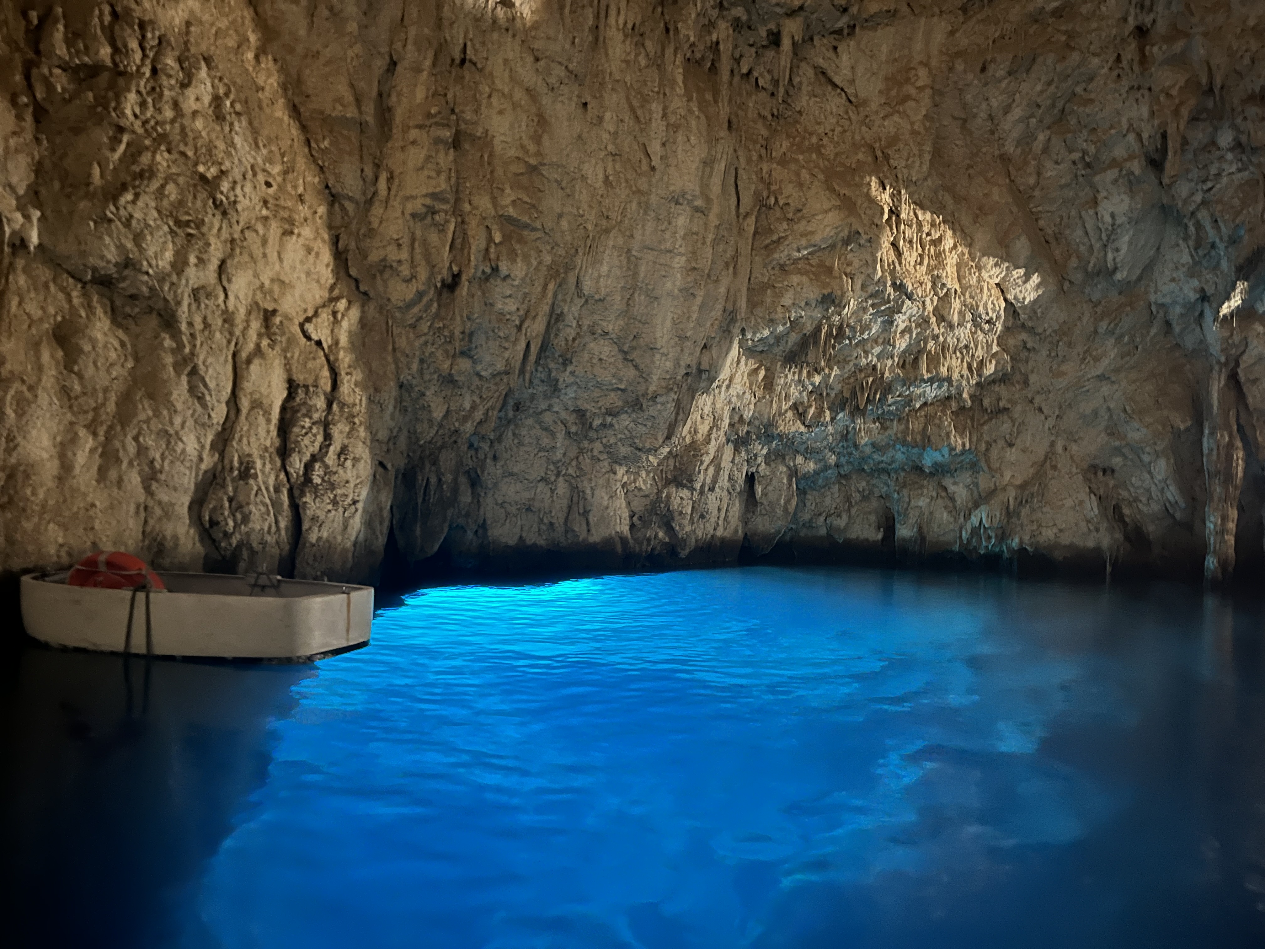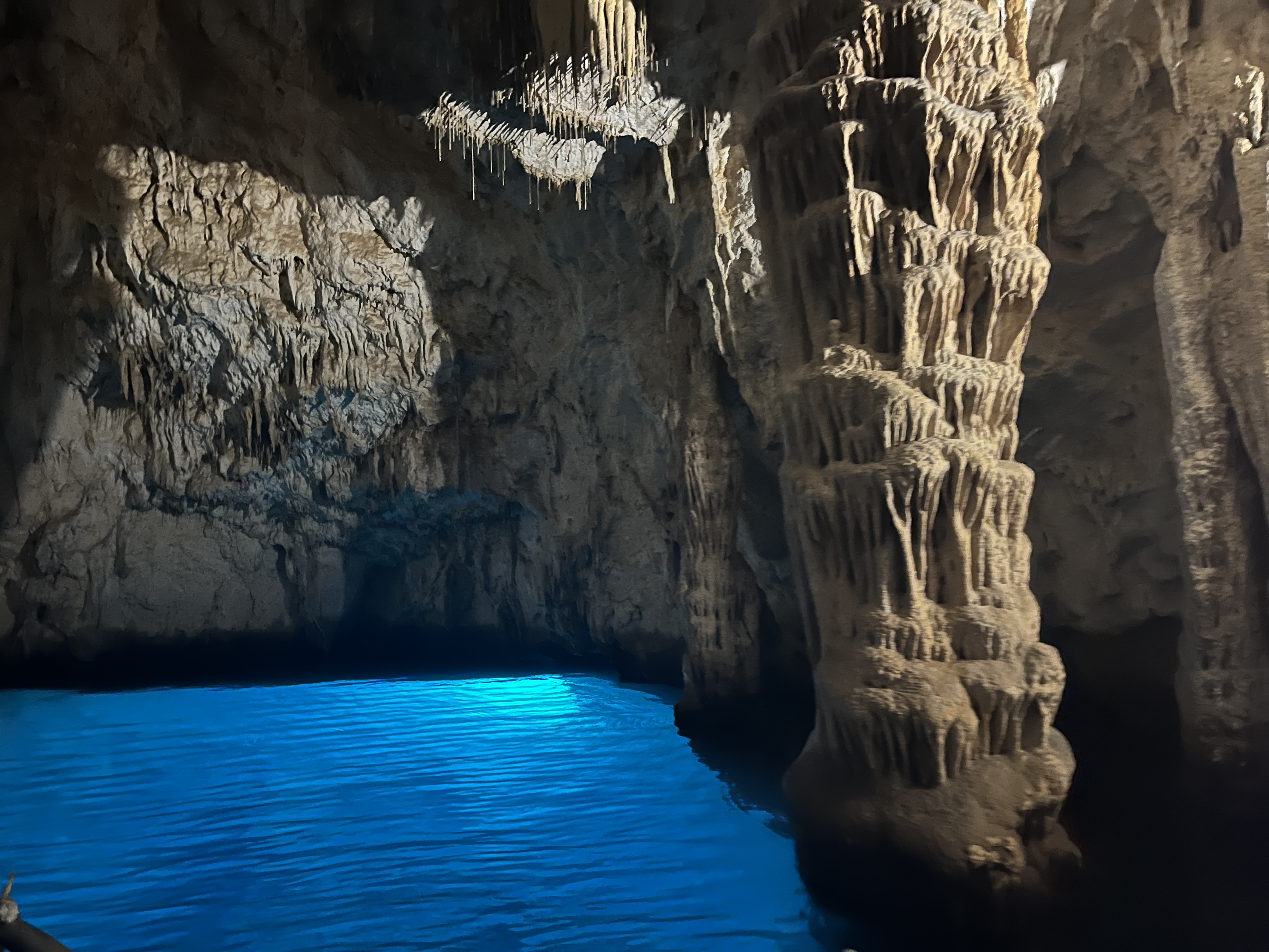 Peștera este legată de mare printr-un pasaj subacvatic ce aduce lumina și creează niște culori absolut superbe