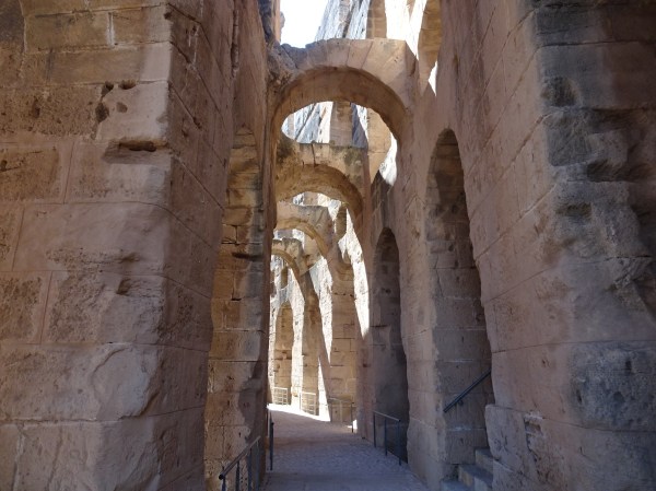 Turul interiorului amfiteatrului El Jem. Interiorul arată aproape identic cu cel al Colosseumului