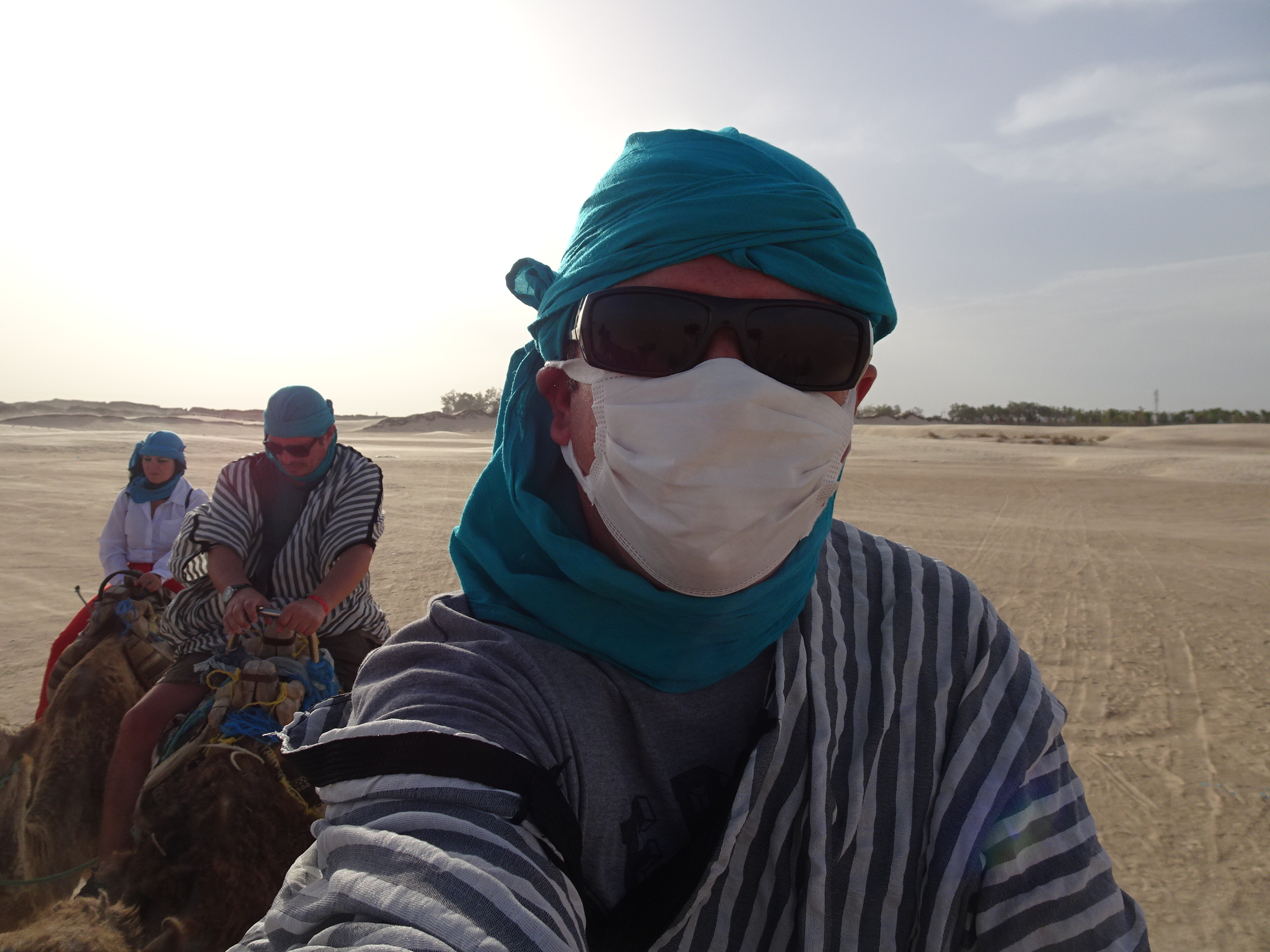 Vântul Saharian nu era însă deloc prietenos. Era pandemie și aveam mască la mine, dar am purtat-o numai pentru a înghiți mai puțin nisip