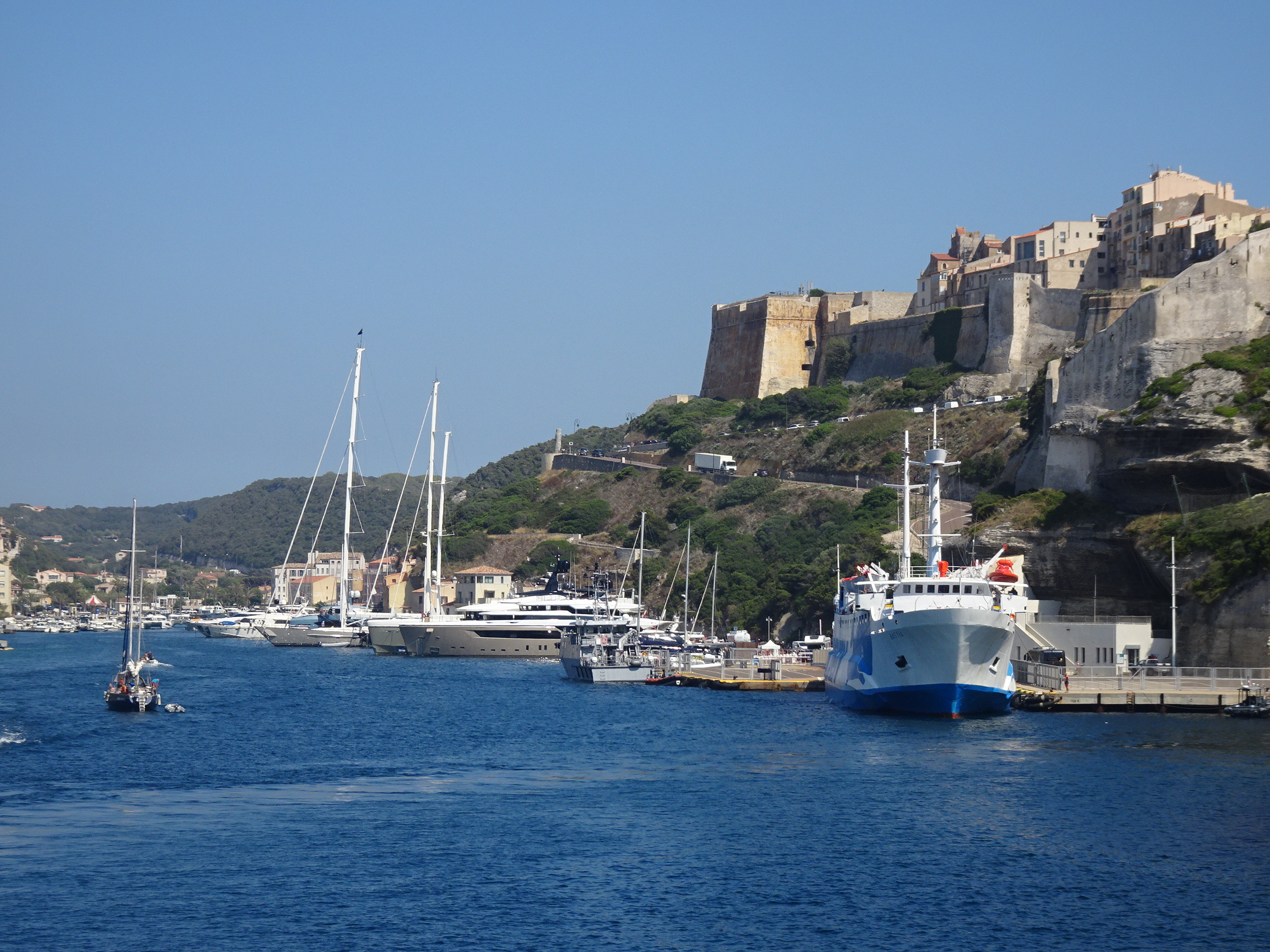 Bonifacio este cel mai sudic oraș al insulei cocoțat chiar în vârful acestor stânci abrupte iar portul său se află într-un mic fiord