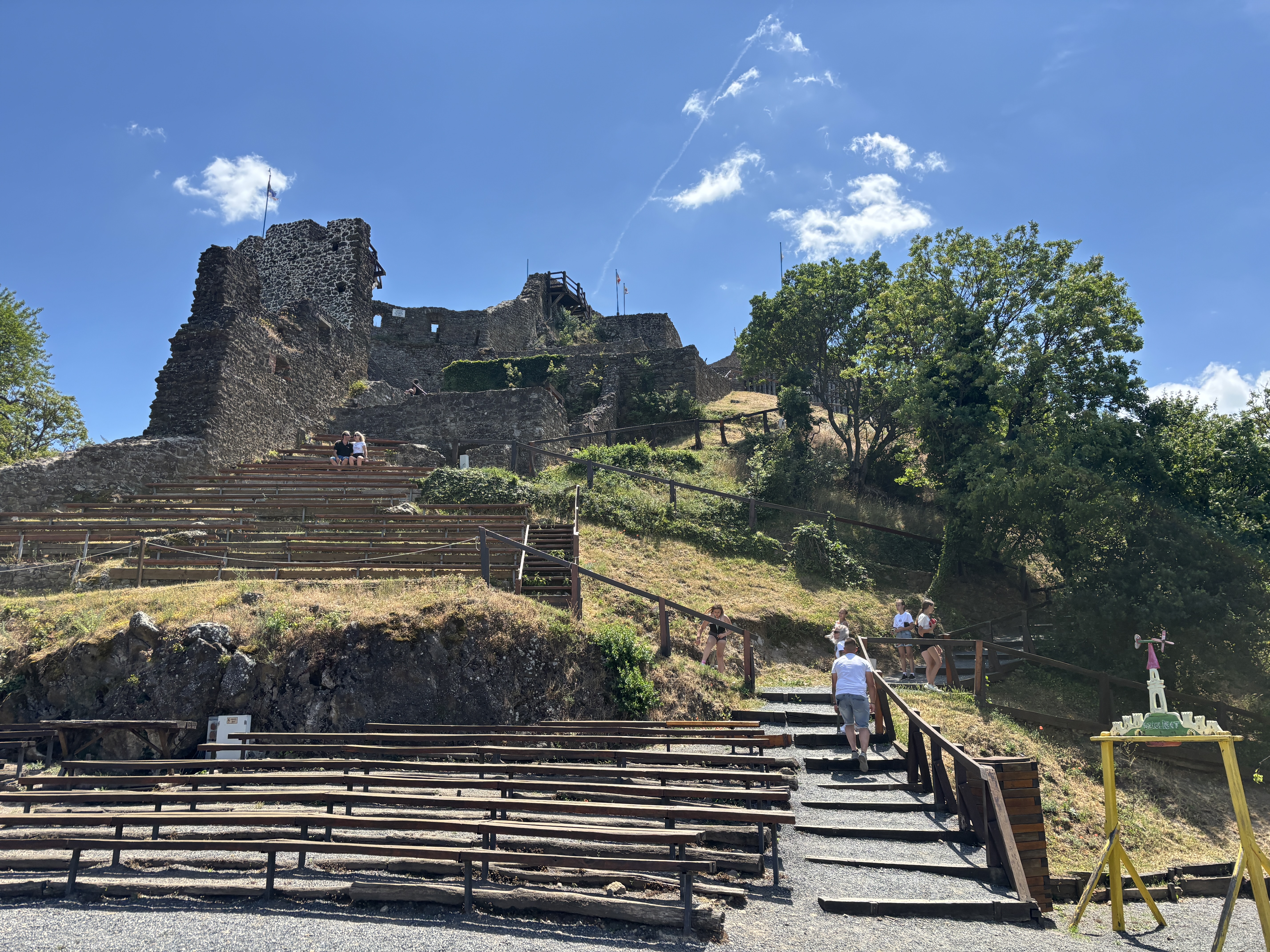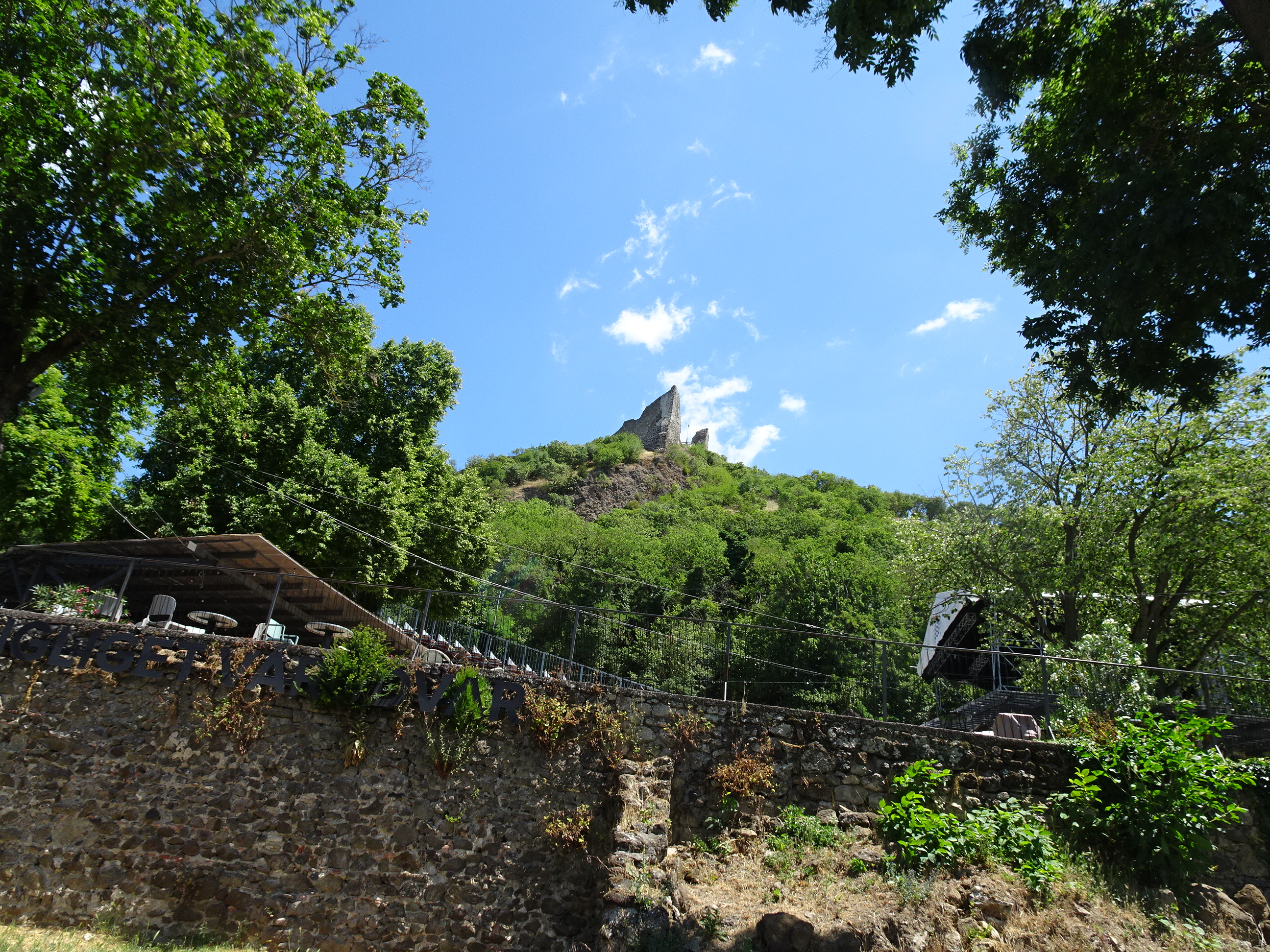 Castelul Szigliget se află în vârful unei coline foarte abrupte. Urcarea până în vârf (mai ales pe căldură) nu e deloc ușoară.