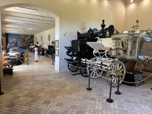 Complexul de la Keszthely este imens. Pe lângă palatul propriu-zis include niște grădini vaste, o herghelie de cai, un muzeu al caleștilor, unul dedicat mașinilor de epocă și altul trenurilor. Dacă le-am fi vizitat pe toate, probabil petreceam o zi întreagă la Festetics. M-am rezumat să văd colecția de calești și mașini de epocă și desigur camerele palatului.