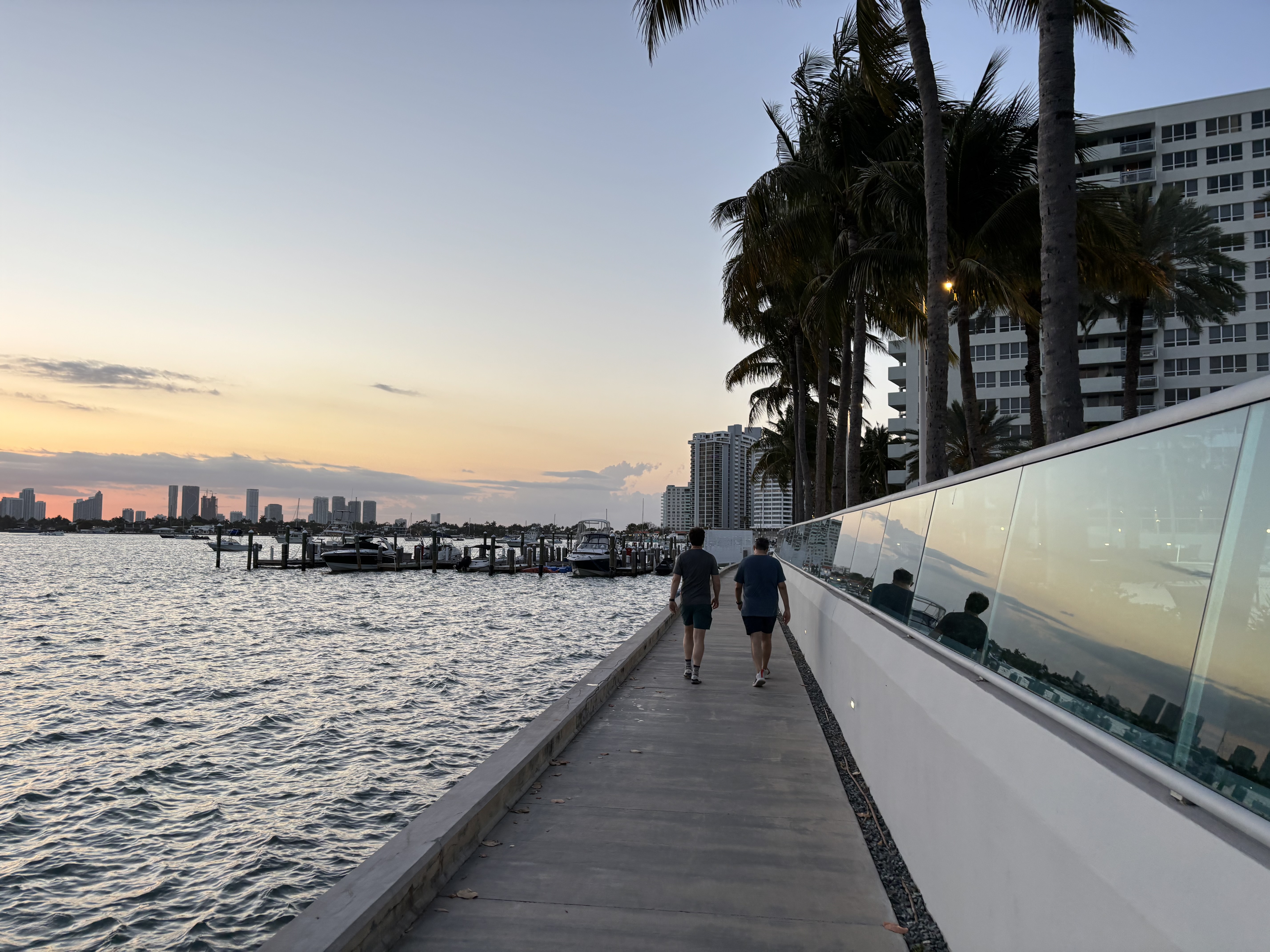 Cei de la hotel au fost amabili să ne ofere early check-in iar pentru că drumul a fost obositor am dormit până seara. La apus am ieșit la plimbare pe malul Biscayne Bay, golful care separă Miami Beach de Downtown