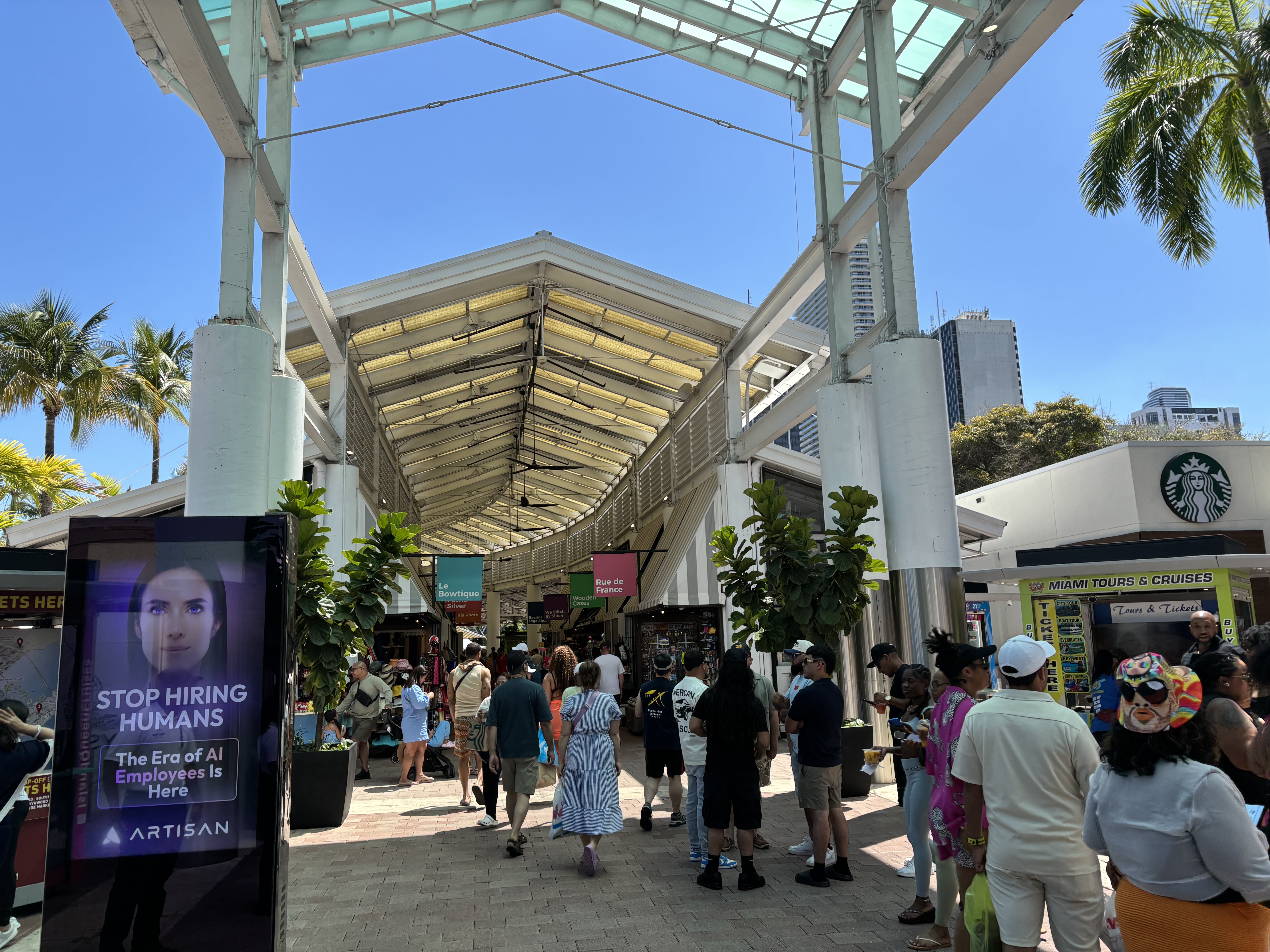 Noi am poposit la Bayside, probabil cel mai vizitat loc din Miami. Acolo este un mall în aer liber, multe restaurante, magazine de suveniruri și portul turistic.