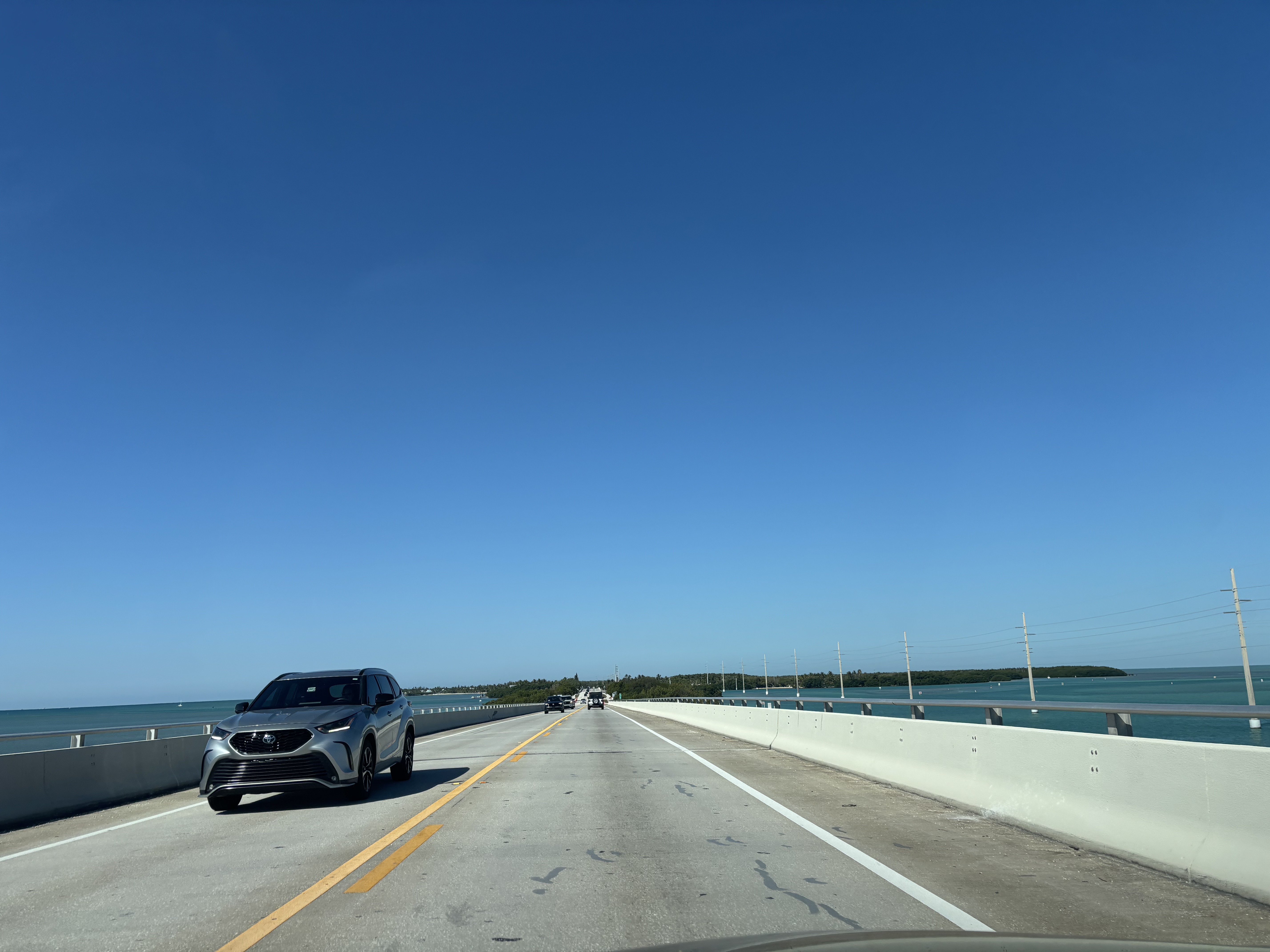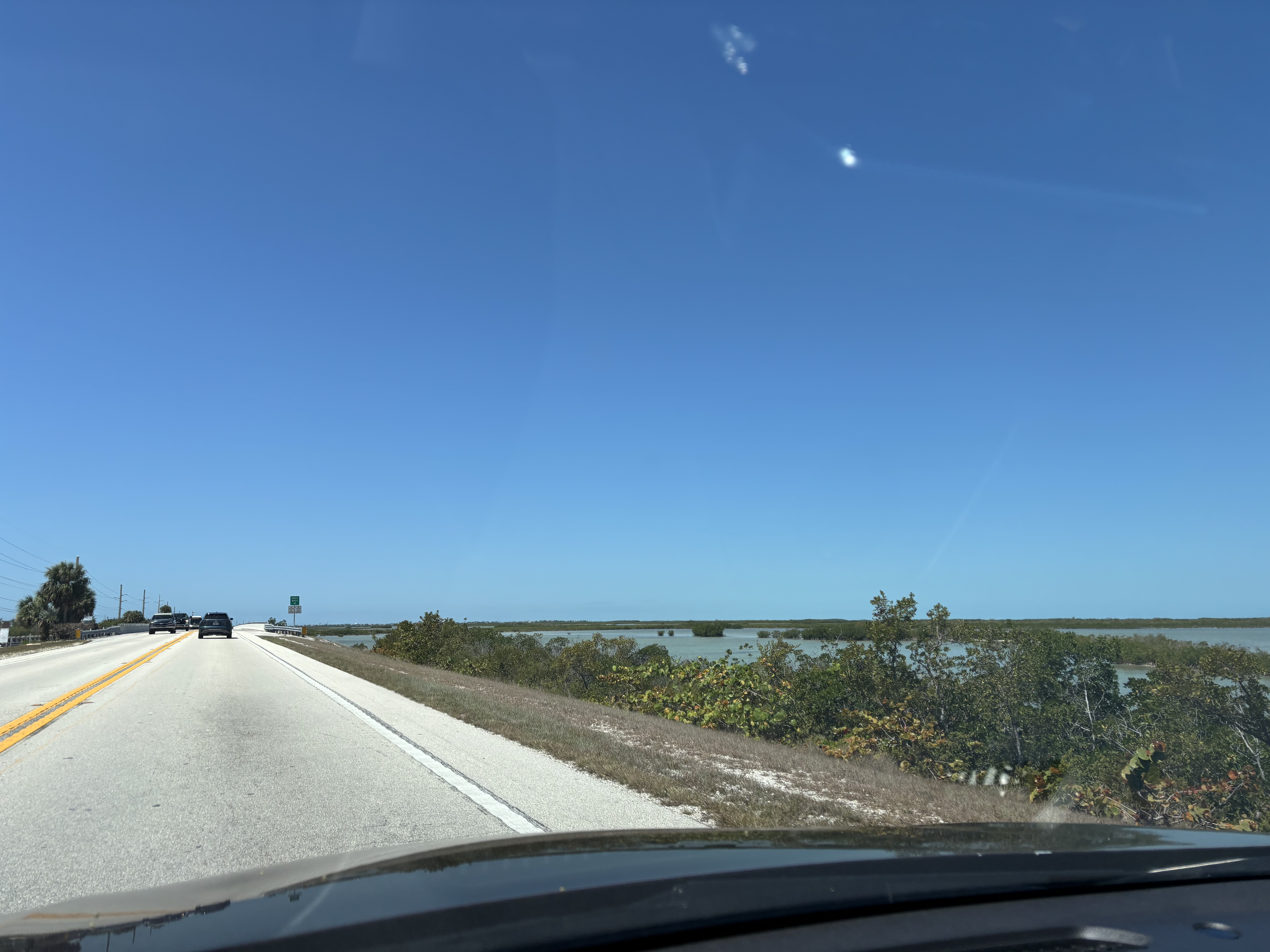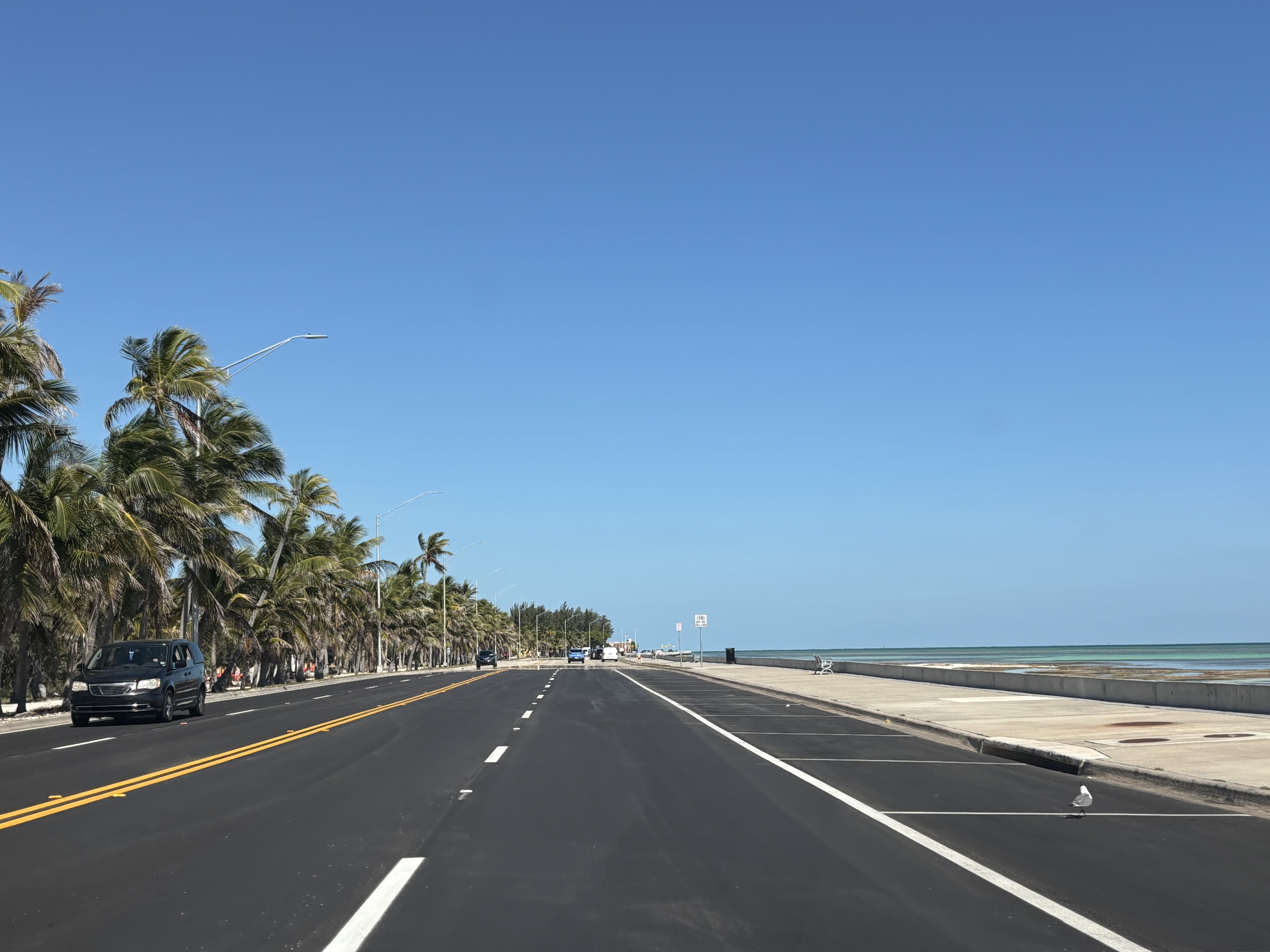 Șoseaua peste insule este o plăcere de condus iar peisajele sunt superbe. Limitele de viteză sunt însă enervante, variind între 35 și cel mult 55 de mile la oră. Radare sunt aproape peste tot. De aceea și drumul durează atât de mult.