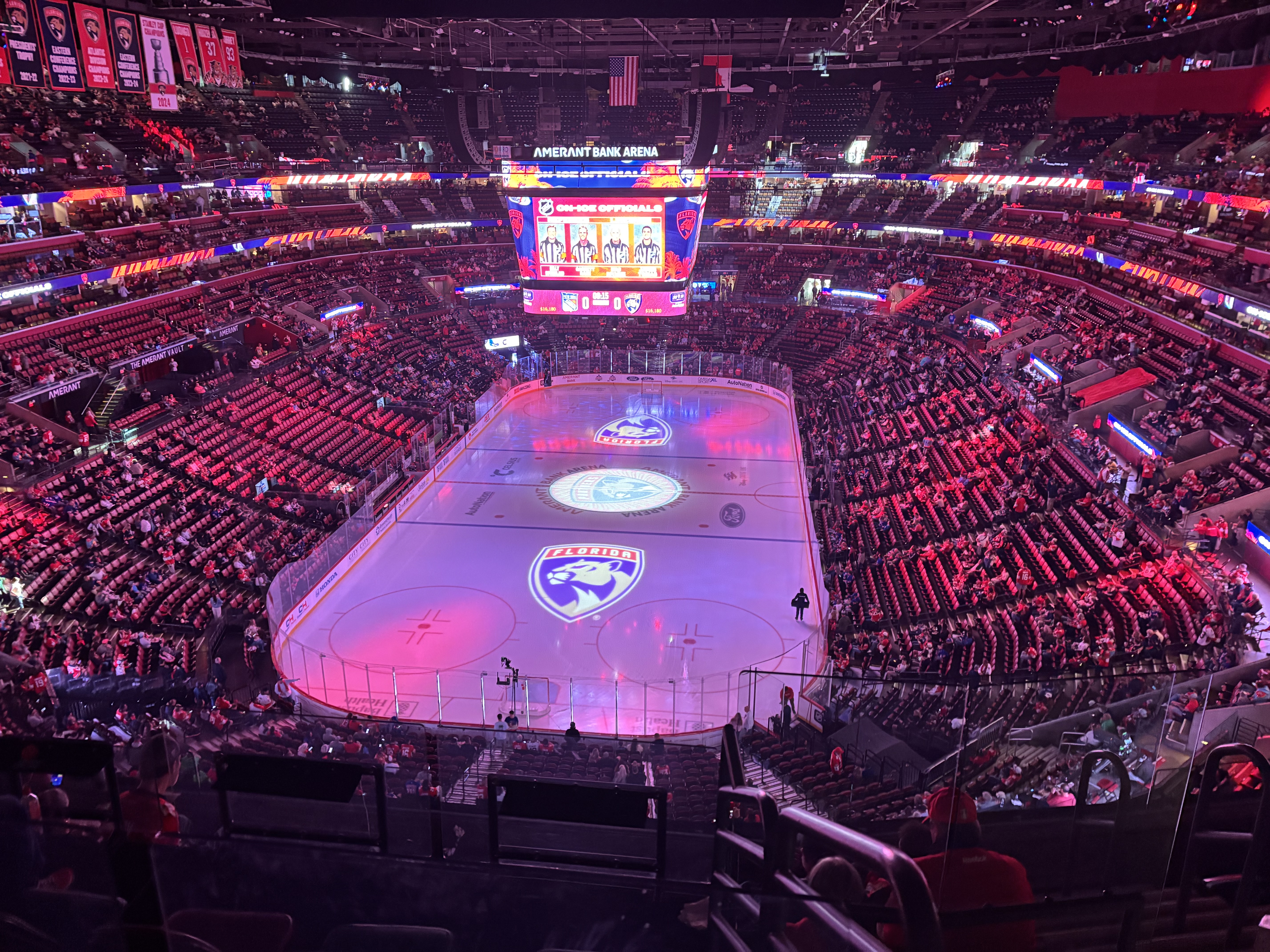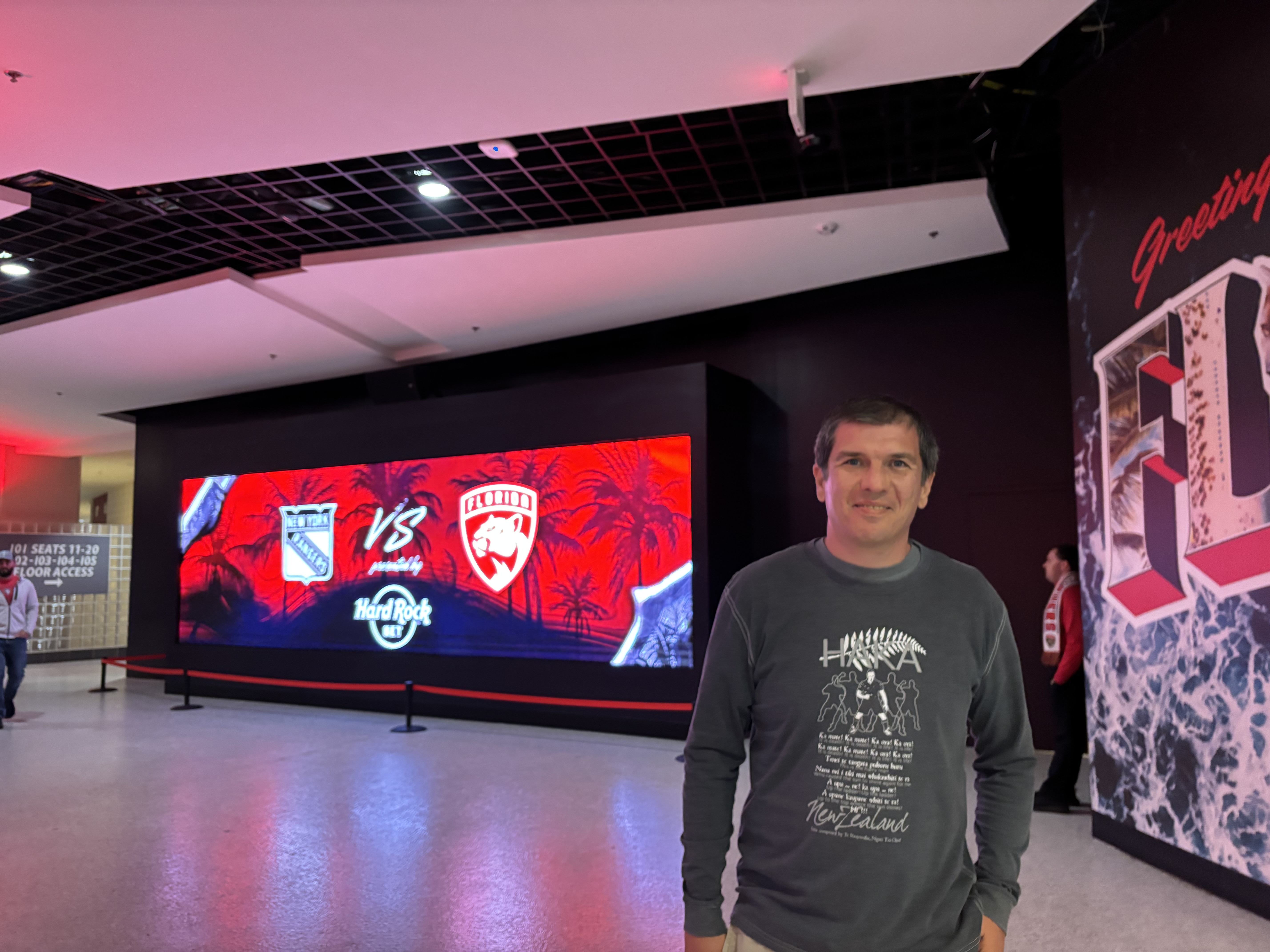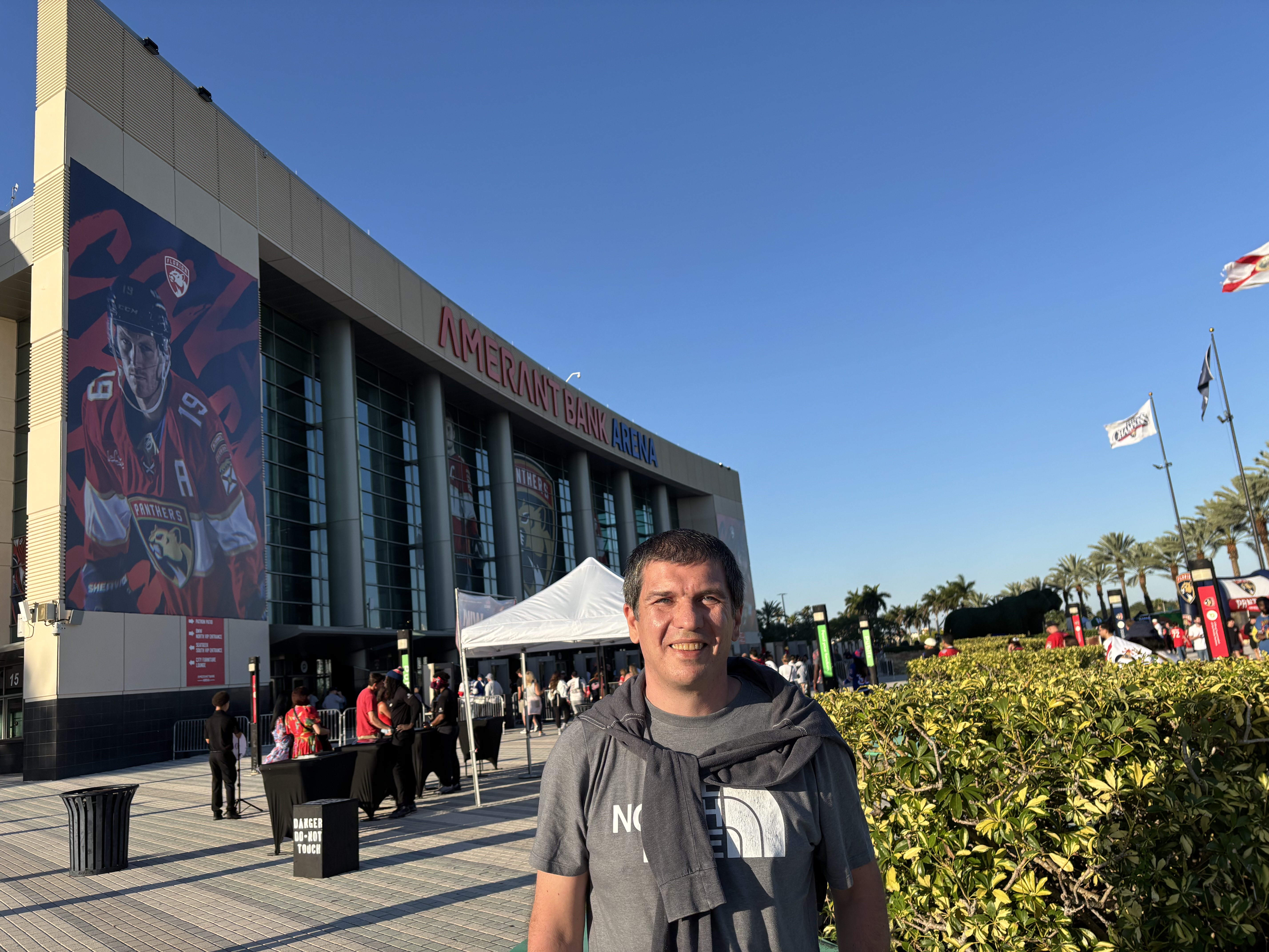 Nu am ajuns la baschet la Miami, dar am mers într-o seară la meciul unei alte echipe faimoase din oraș: Florida Panthers este echipa de hochei care își joacă meciurile acasă la Amerant Arena, la nord de Miami.