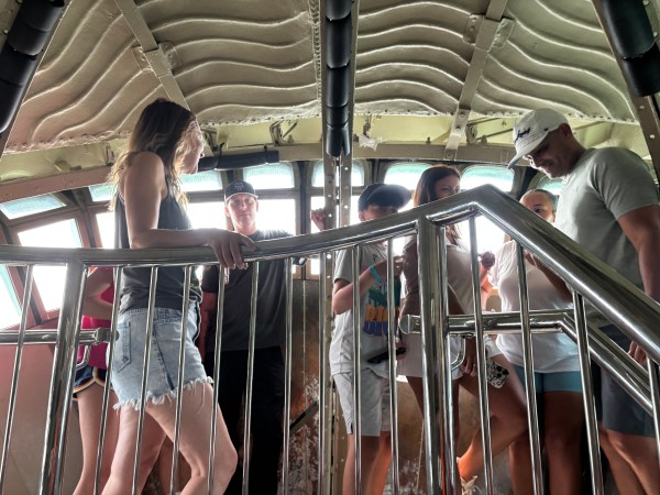Urcarea nu a fost deloc ușoară, pentru că era destul de cald în interiorul structurii metalice. A fost fascinant să vedem cum arată statuia la interior