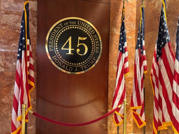 La interior se pot cumpăra tot felul de suveniruri ale lui Trump și MAGA iar fanii lui pot face poze