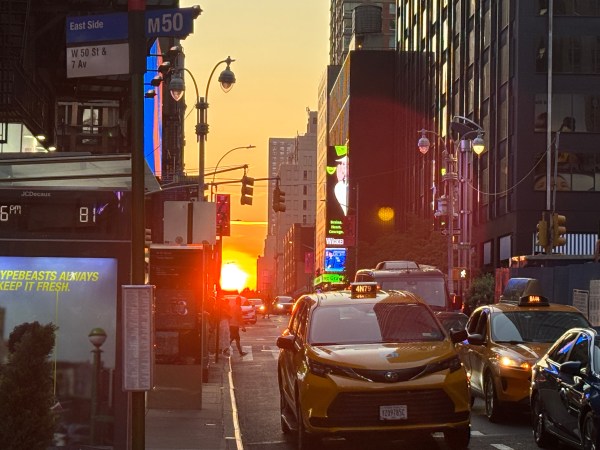Pentru că străzile din New York sunt perfect aliniate și paralele, în lunile mai și iulie se poate admira un fenomen special când soarele apune perfect perpendicular pe toate străzile longitudinale din oraș.
