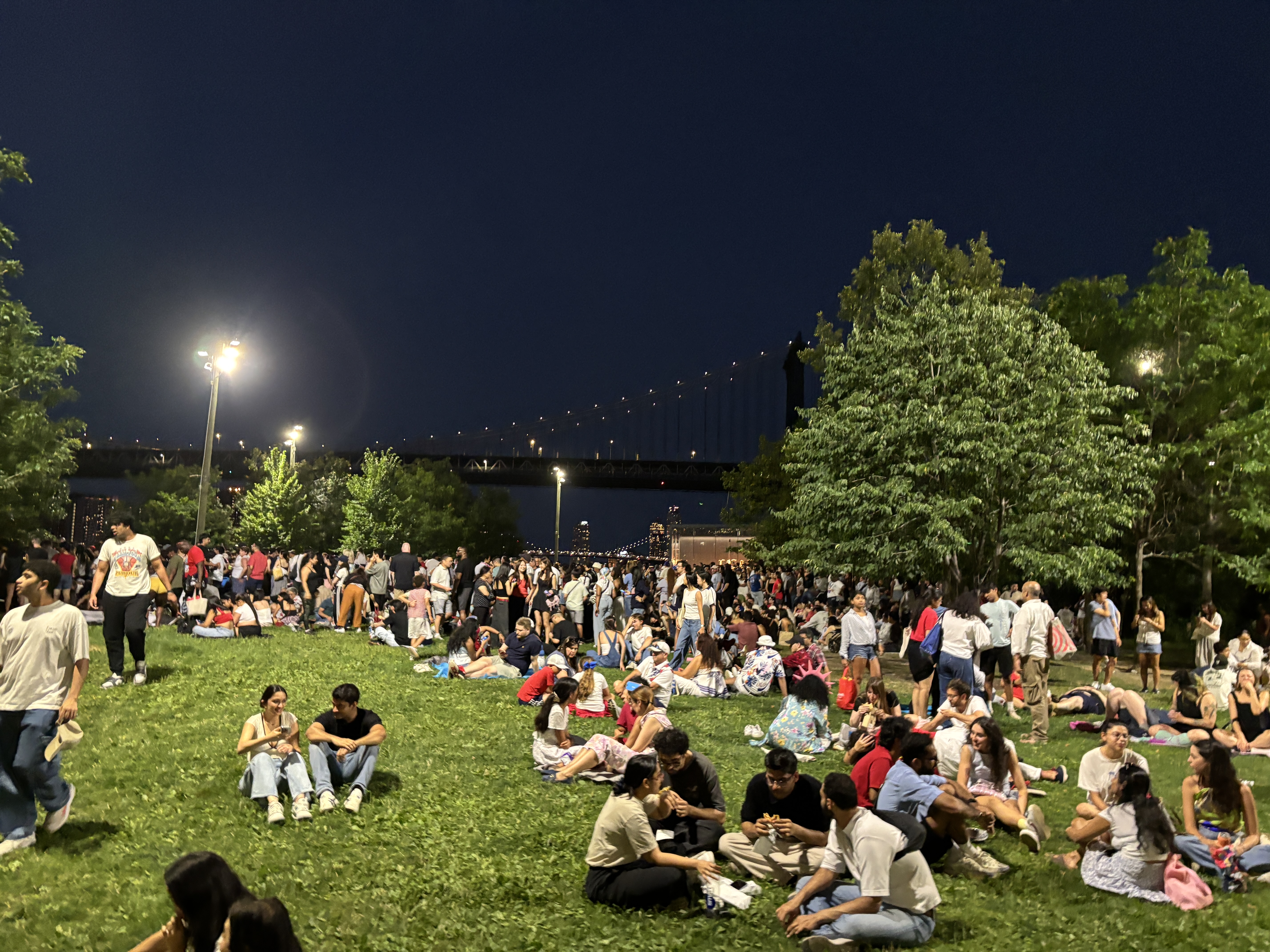 Am ajuns cu o oră înainte de artificii și nu ne-a venit să credem ce am găsit acolo. La zona 2 unde aveam noi biletele, coada se întindea pe vreo 2 kilometri și oamenii erau nervoși că stăteau deja de mai multe ore la coadă. Se pare că NYPD se mișca extraordinar de încet cu controalele la intrare. După ce am avansat foarte puțin și locul a devenit periculos de înghesuit am zis să renunțăm și să plecăm.
