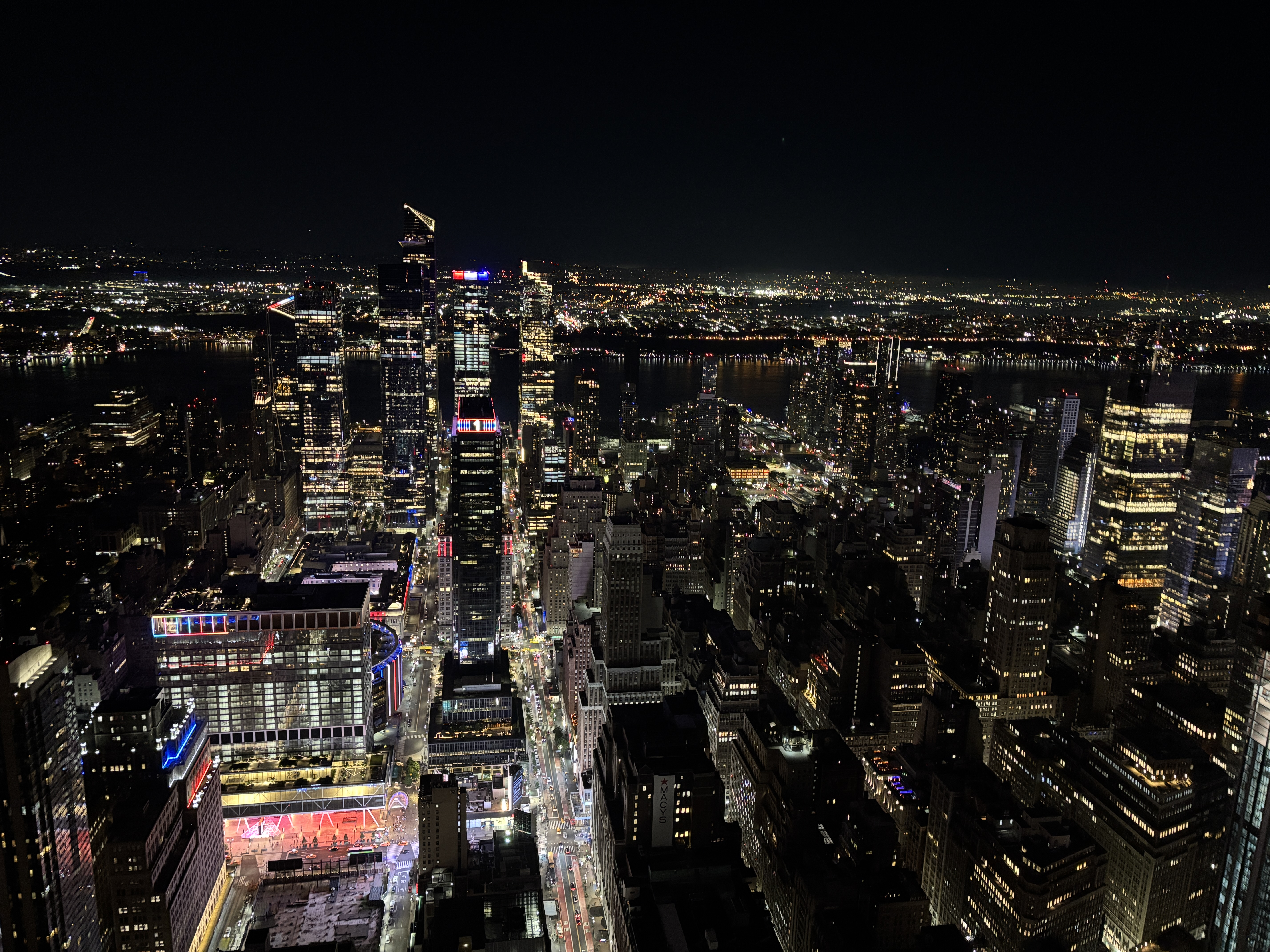 Se poate ieși afară iar vederile din inima Manhattan sunt fantastice. Mai urcasem pe Empire State ziua, dar noaptea mi s-a părut mult mai frumos.