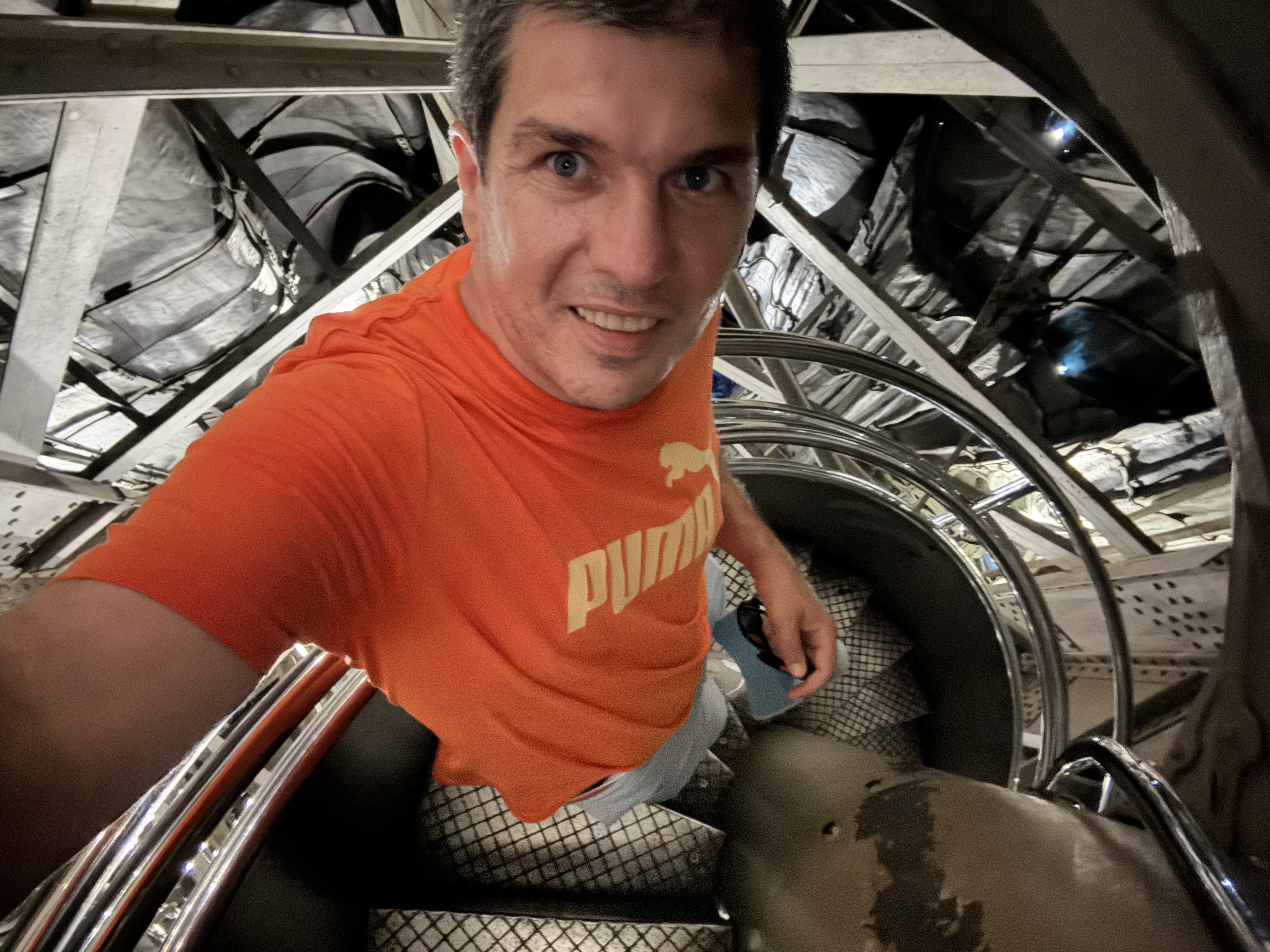 Urcarea nu a fost deloc ușoară, pentru că era destul de cald în interiorul structurii metalice. A fost fascinant să vedem cum arată statuia la interior