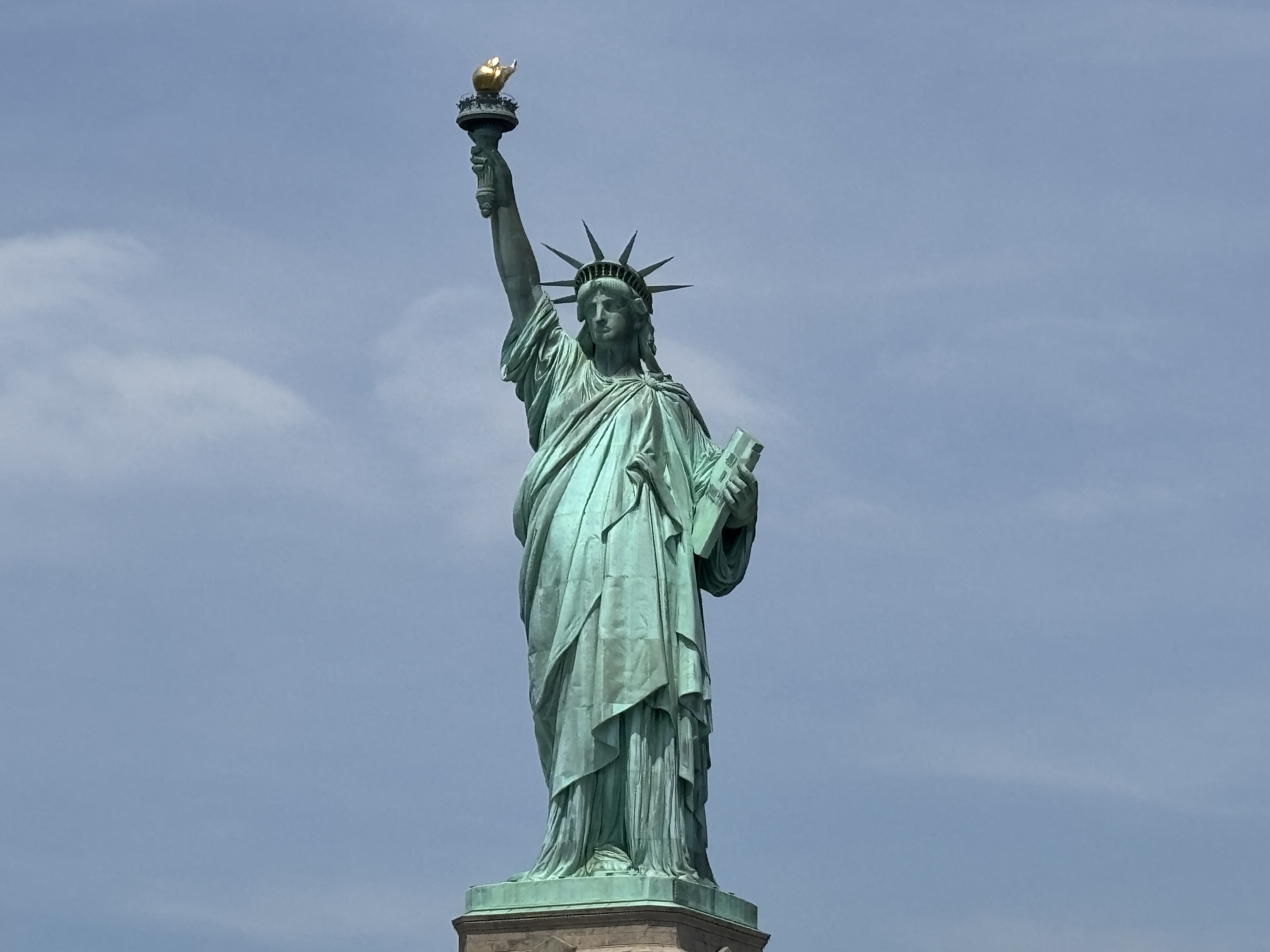 Vedere cu brațul și torța statuii. Acolo nu are nimeni acces. Nici chiar Michael Jackson nu a fost lăsat să filmeze, iar pentru videoclipul Black or White s-a folosit o replică a torței.