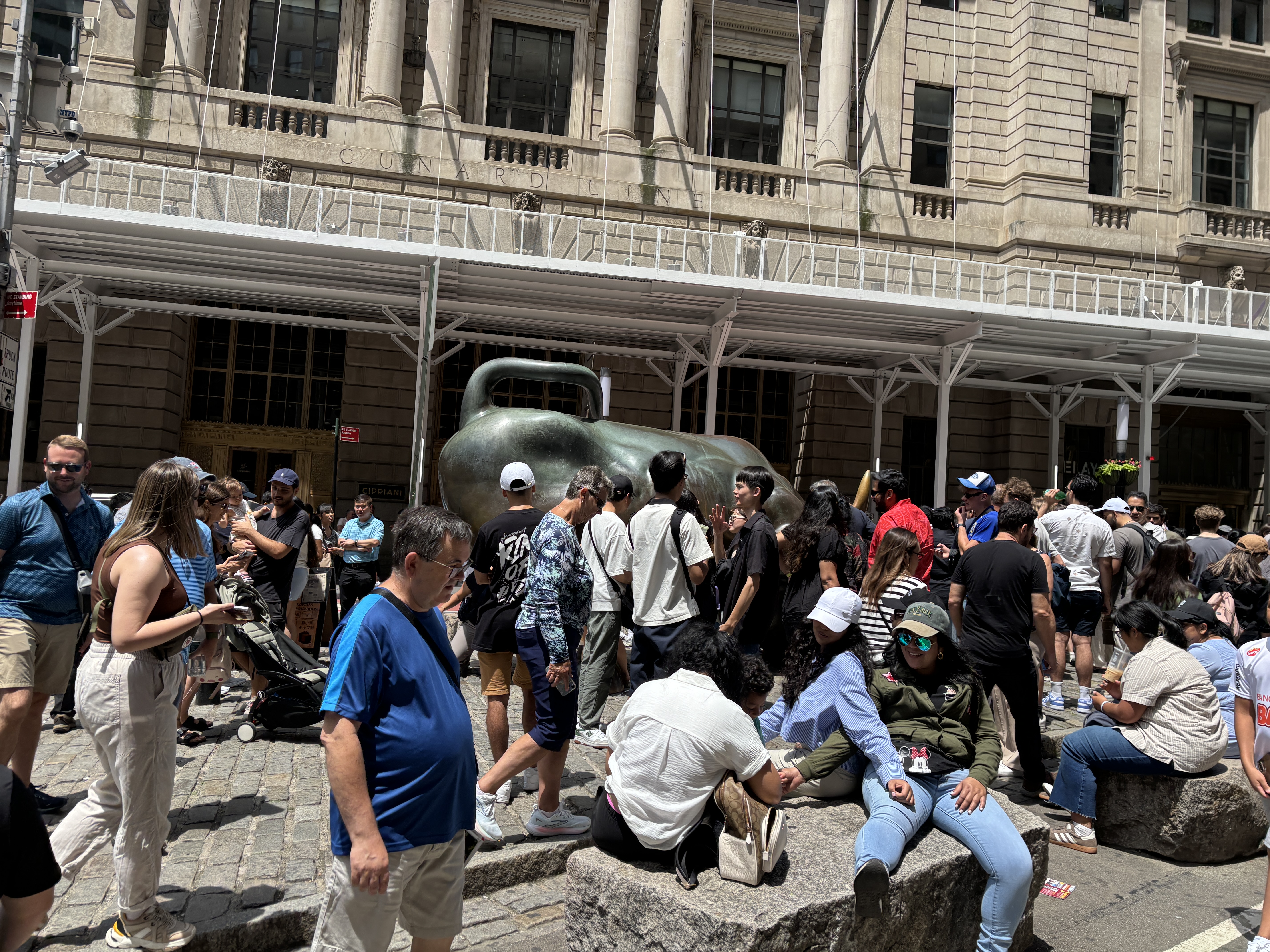 Turiștii se înghesuie la poze cu statuia Charging Bull