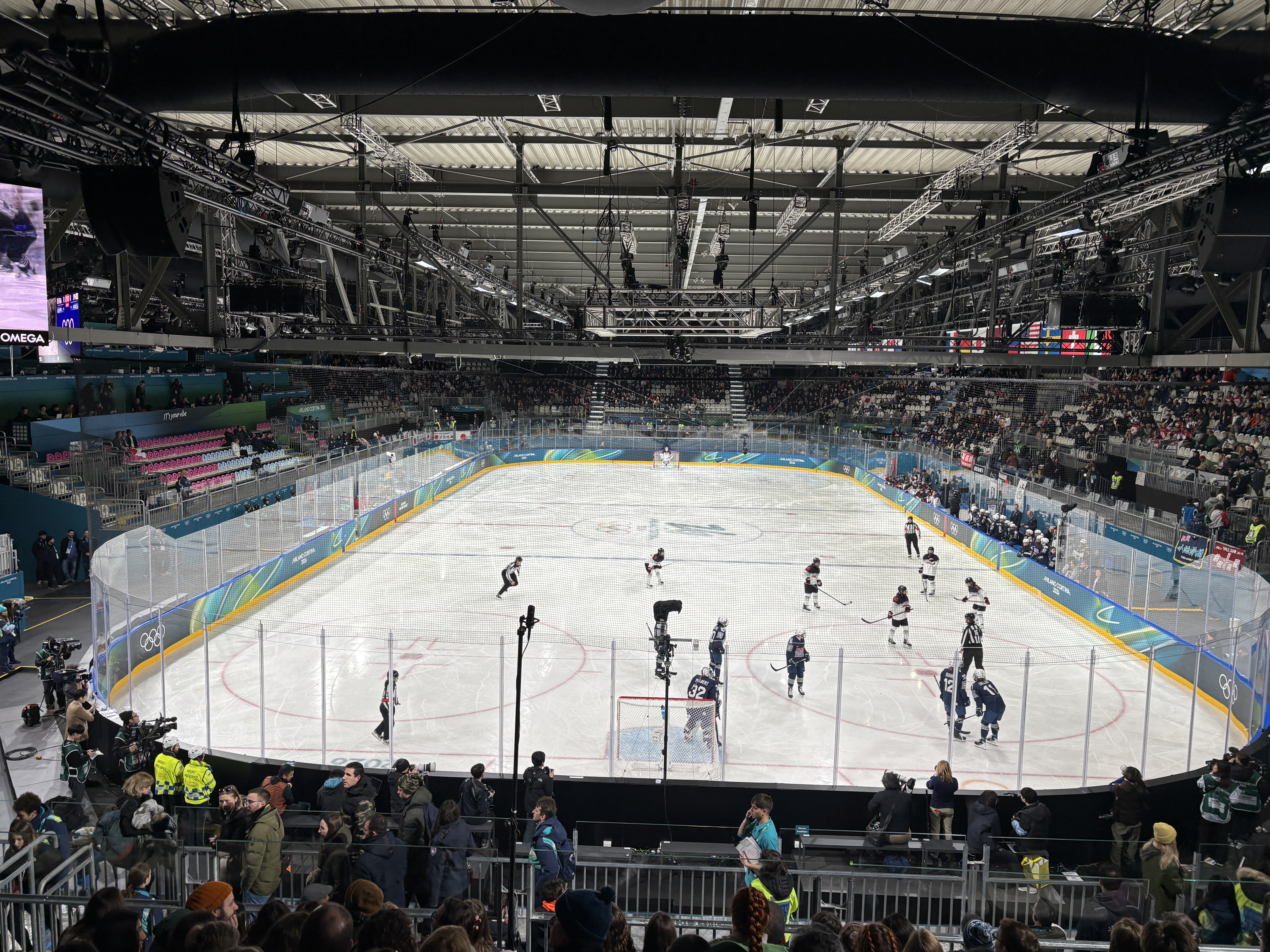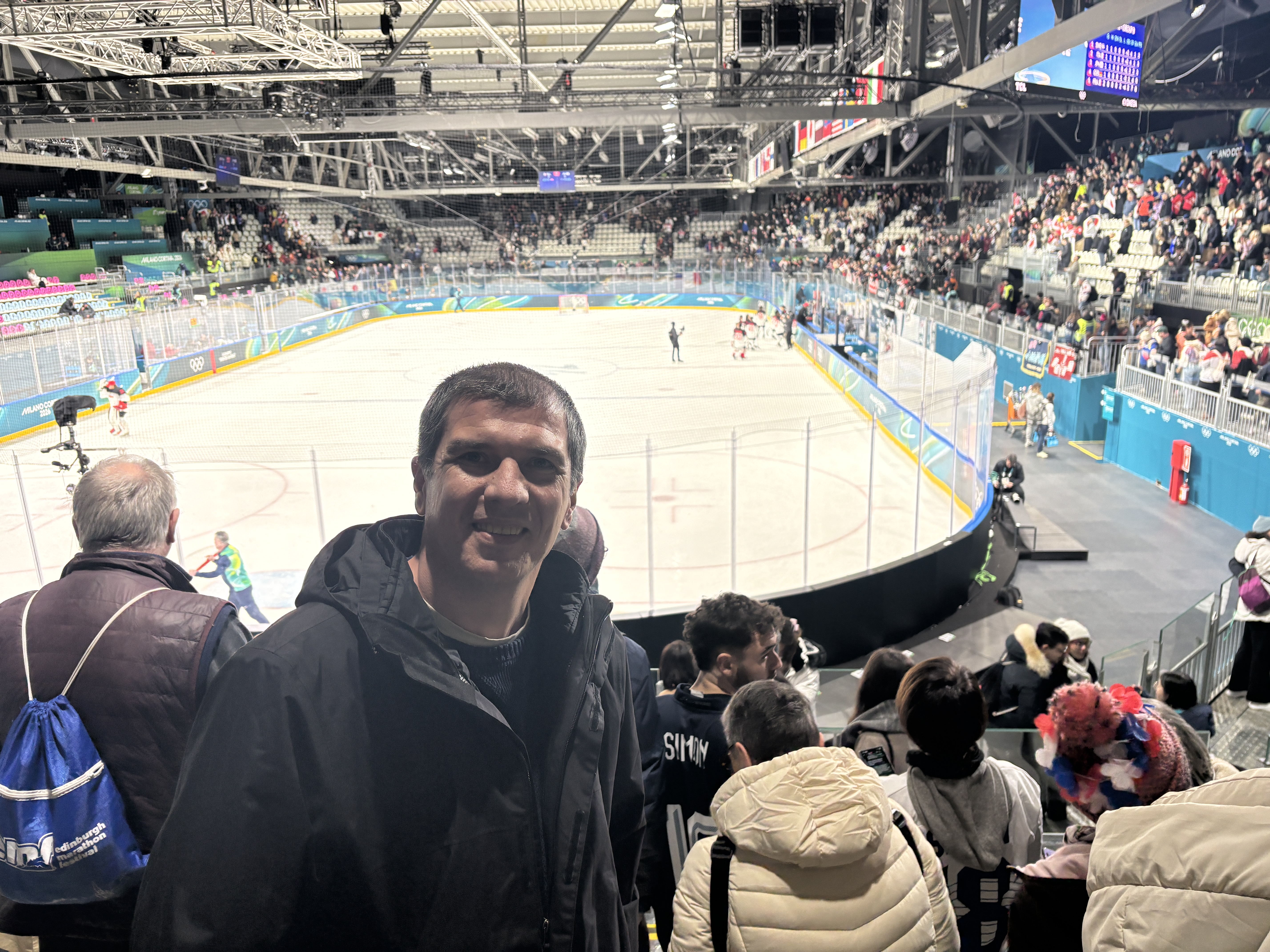 Am decis pentru a doua zi, să mai participăm la un eveniment al olimpiadei, iar cel mai potrivit ca oră a fost un meci de hochei din turneul feminin. Acesta avea loc după prânz la patinoarul de la Rho Fiera, târgul expozițional aflat la vest de Milano. Am sosit acolo cu transportul în comun și ne-am pus la coadă la controlul de securitate.