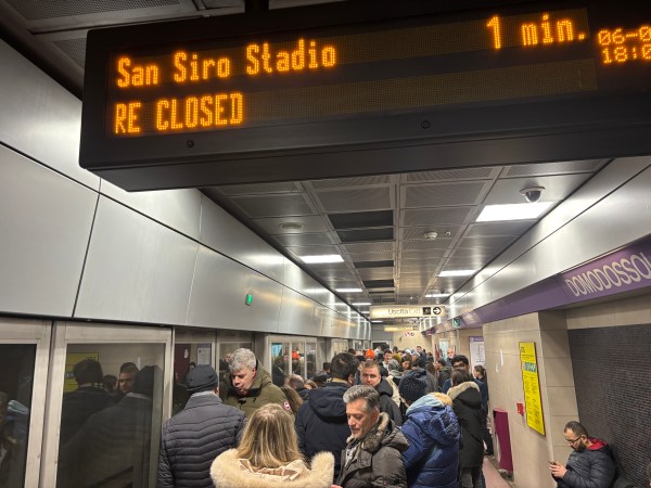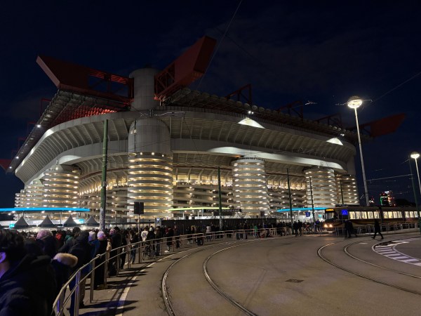 Am prins un metrou după vreo 3-4 trenuri pline în care nu ne-am putut urca și am coborât chiar lângă marele stadion al Lombardiei