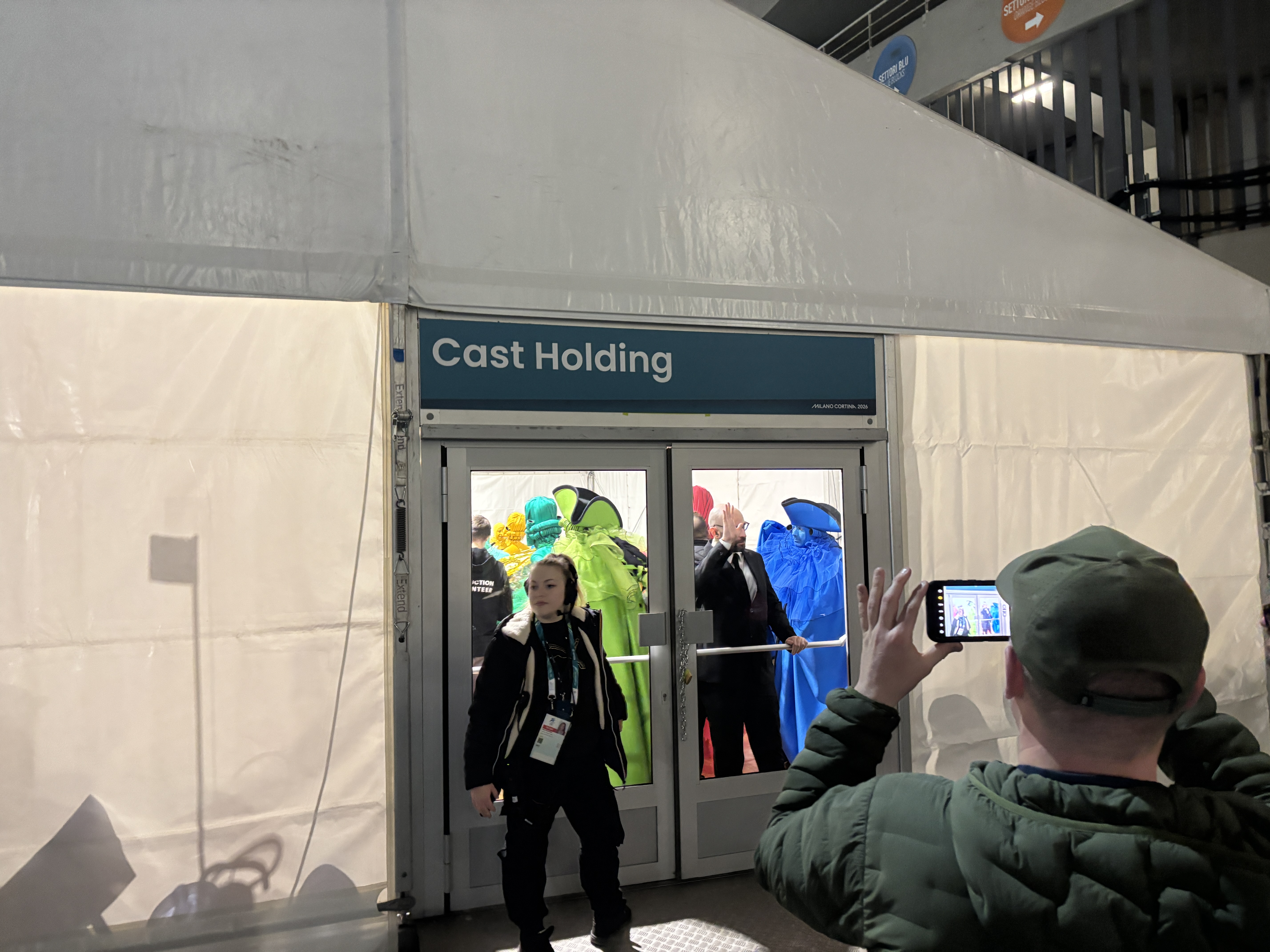 Organizarea italiană de la intrarea în stadion a lăsat mult de dorit. Intrarea se făcea pe baza categoriei de bilet, indiferent de locul unde erau locurile pe stadion. Astfel puteai intra de foarte departe de sectorul unde trebuia să mergi. În cazul nostru s-a întâmplat ca poarta să fie chiar lângă sectorul nostru doar că eram blocați de coridorul VIP pe unde urmau să sosească șefii de state, iar din cauza securității maxime a trebuit să ocolim tot stadionul printr-o aglomerație de nedescris ca să treacă Meloni, Vance și alții. Cozi mari erau peste tot, atât la magazinele oficiale cât și la bufeturile cu mâncare.