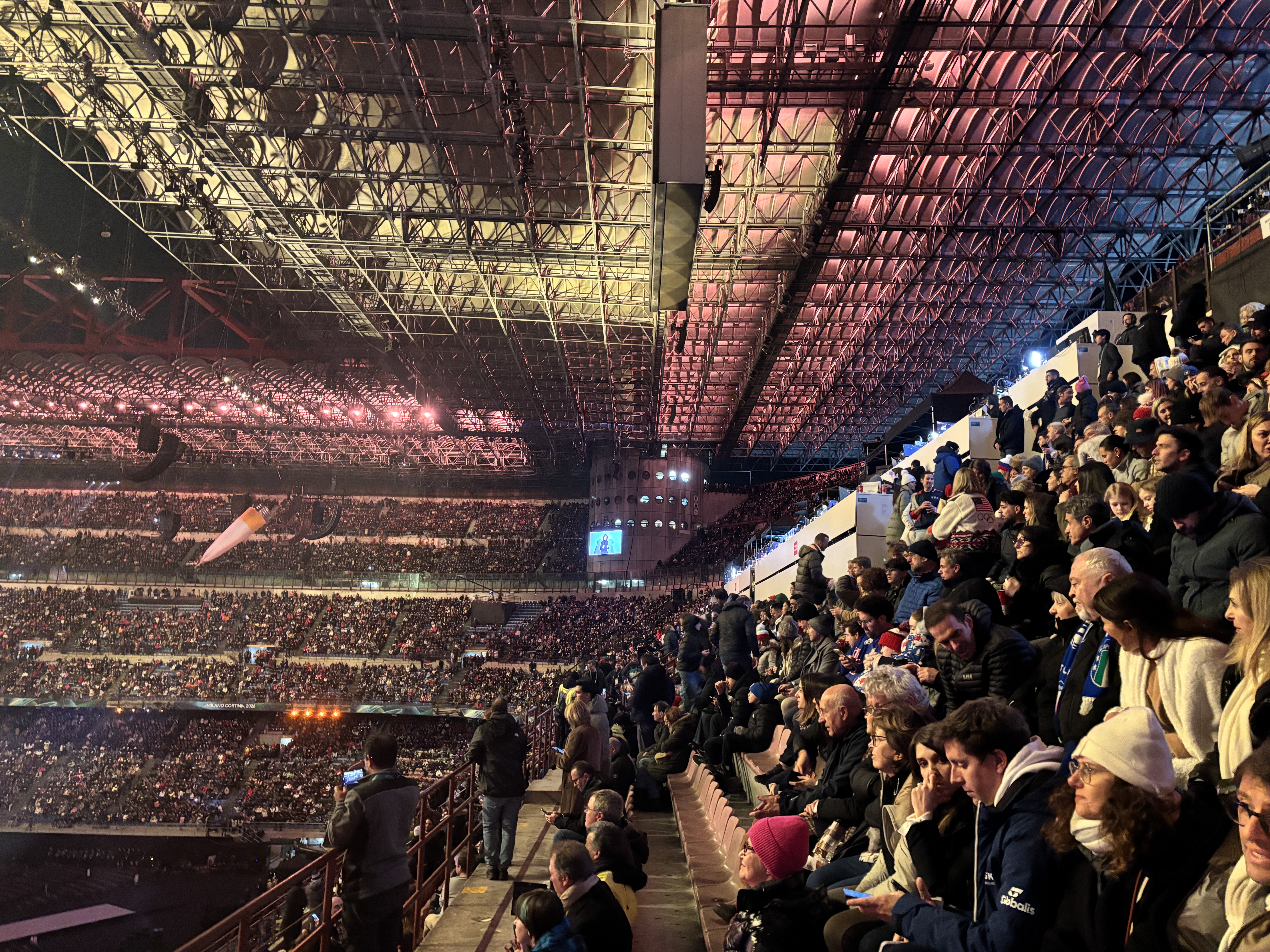 Să particip la o olimpiadă de vară sau de iarnă a fost un lucru pe care mi l-am dorit de mult timp. Am fost aproape să ajung la olimpiadele de la Torino sau Beijing acum mai mulți ani dar din diverse motive nu am mai putut merge. Mai recent am vrut să mergem la olimpiada de vară la Paris, dar prețurile mari la bilete și cazare ne-au făcut să renunțăm. Din același motiv n-am fi ajuns nici la olimpiada de iarnă din acest an de la Milano – Cortina, numai că s-a ivit o ocazie în ultimul moment pentru a asista la marele eveniment de deschidere a olimpiadei pe stadionul San Siro.