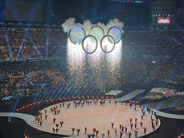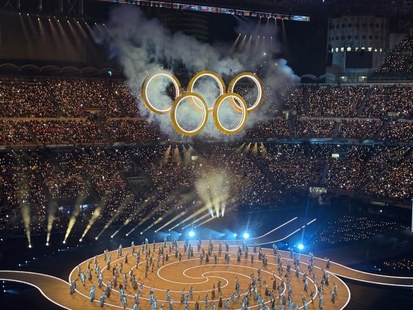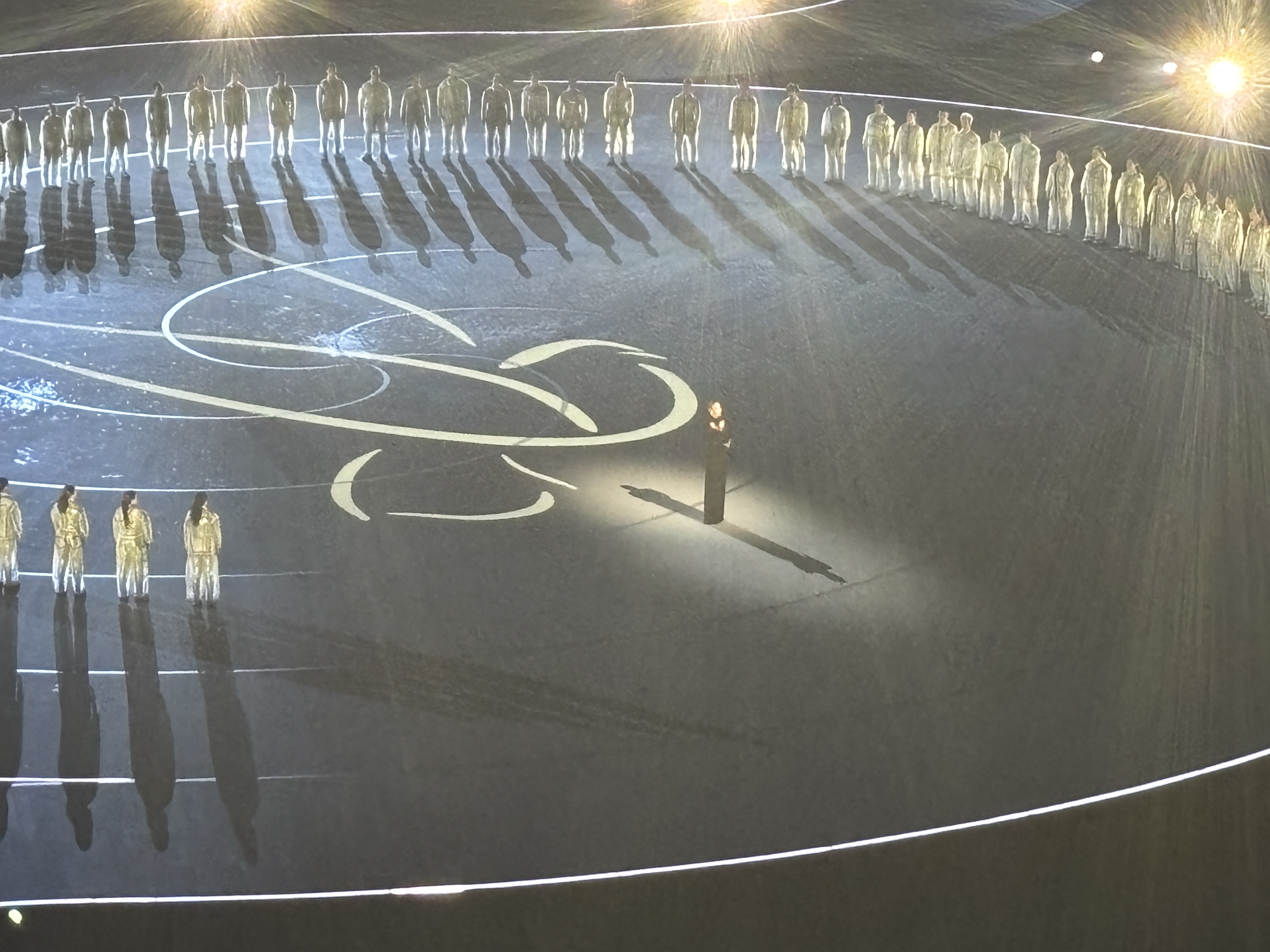 Ceremonia a început impresionant, cu un show coregrafic spectaculos. Pe ecrane erau transmise concomitent imagini cu showul de pe stadion și cu spectacolul din celelalte locații ale olimpiadei.