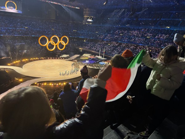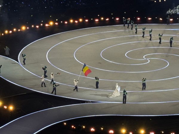 Au apărut apoi cercurile olimpice și a început parada echipelor concurente