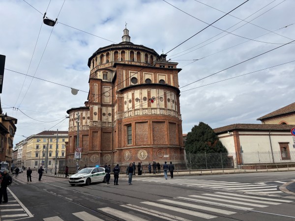 Santa Maria delle Grazie, renumita biserică milaneză unde traficul era blocat de carabinieri. Se pare că unele oficialități prezente la olimpiadă au dorit să facă o vizită privată la Cina cea de taină a lui Da Vinci